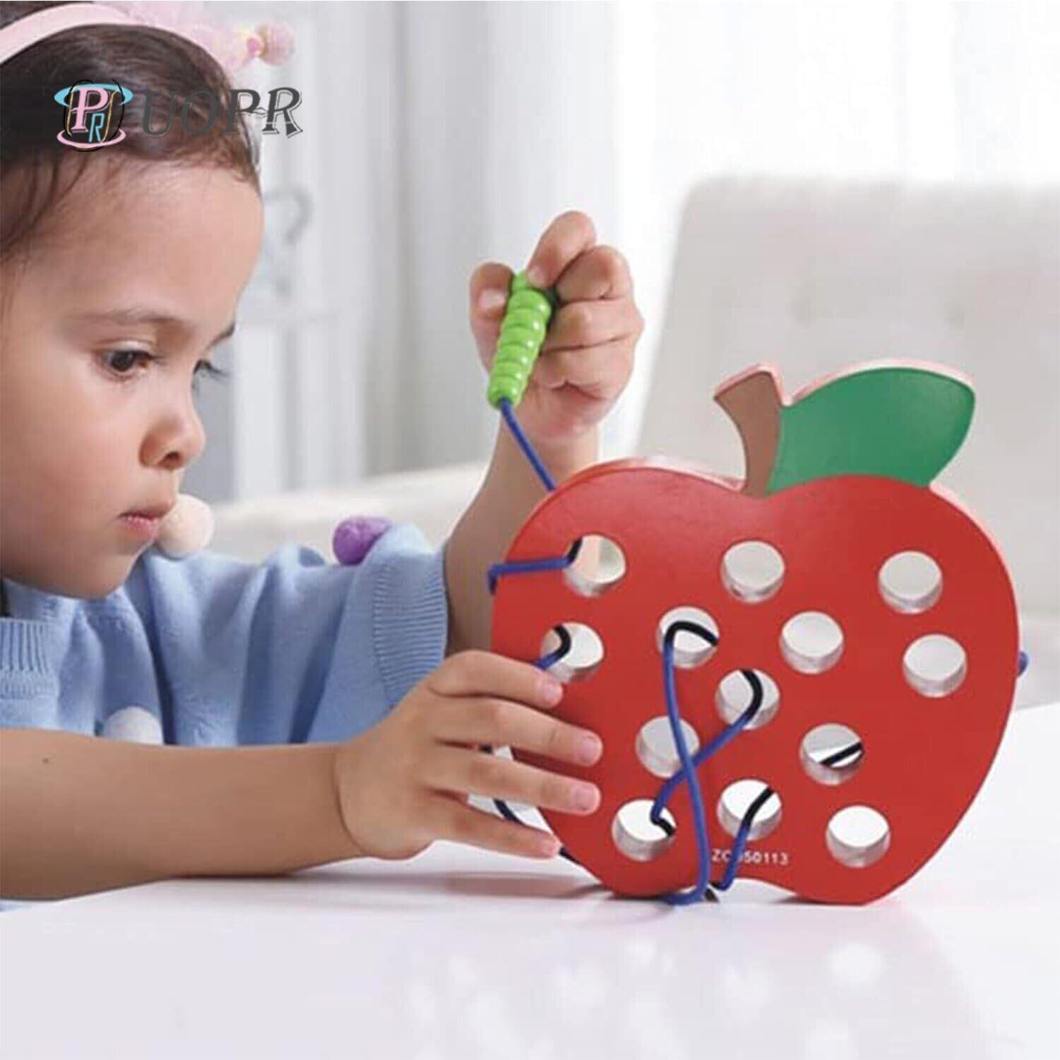 UOPR ひもとおし おもちゃ 果物 青虫 りんご迷路 幼児 木製 早期 指先訓練 紐通しおもちゃ 知育玩具 子どもの思考力 女の子 男の子 誕生日 入園祝い クリスマス プレゼント