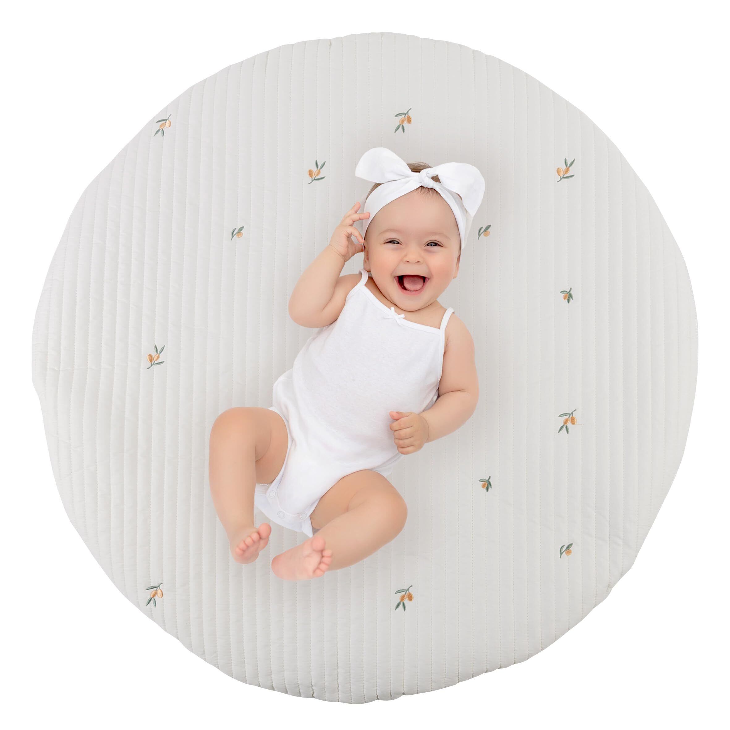 【インテリアコーディネーター推薦】 ベビーマット プレイマット 赤ちゃん マット ベビージム 円形 月齢フォト 直径80㎝ ファスナー付き (オリーブ)