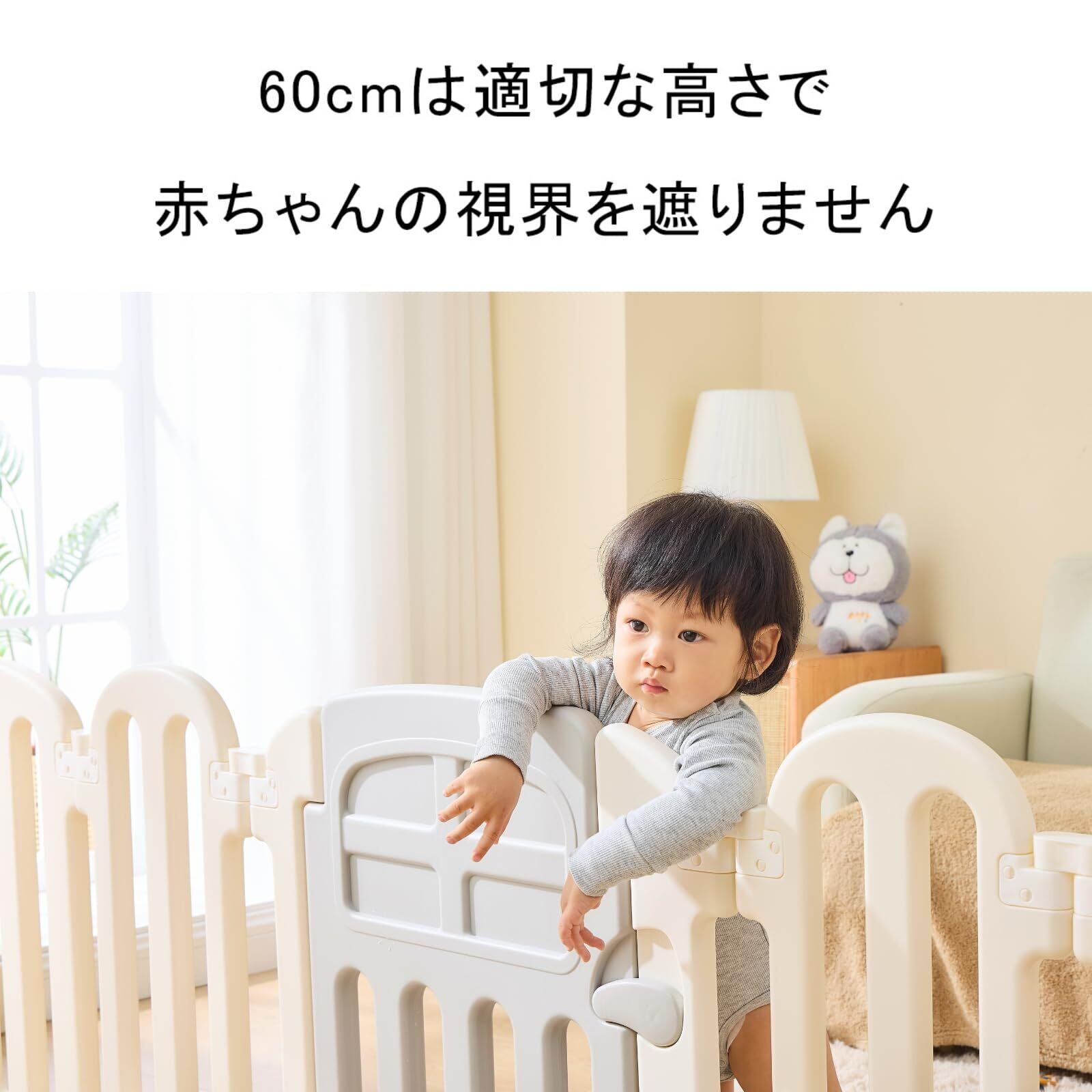 【多機能性】赤ちゃんだけでなくペットにも適用できる多機能性を持っています。ペットフェンスとして使用することで、ペットを特定のエリアに制限し、家庭内での安全を確保できます。例えば、キッチンやリビングルーム、廊下など、ペットがアクセスしてほしくない場所を簡単に隔離できます。お子さんとペットがいる家庭では、1つのアイテムで両方の安全を守ることができ、無駄な出費を抑えることができます。