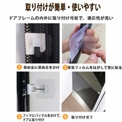 【穴開け不要で簡単設置】: 穴を開ける必要がない設計で、ドアや階段に簡単に設置できます。取り付けや取り外しが簡単で、壁を傷つけません