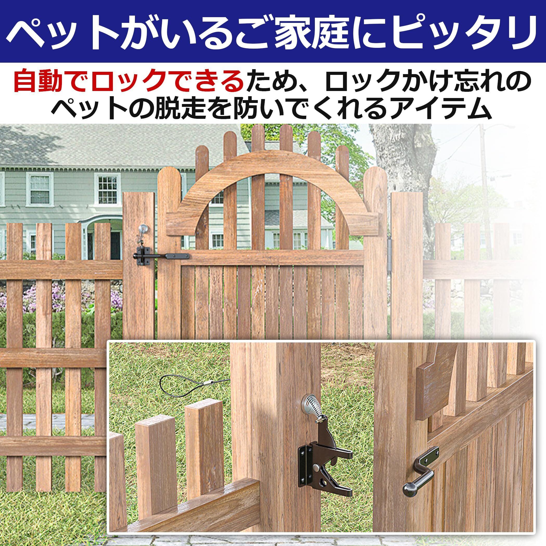 ペットがいるご家庭にピッタリ:自動的にロックがかかるゲートラッチですので、ペットがいるご家庭にピッタリです。ロックをかけるのを忘れてしまって、ペットが脱走してしまう事態を防ぐのに役立ちます。