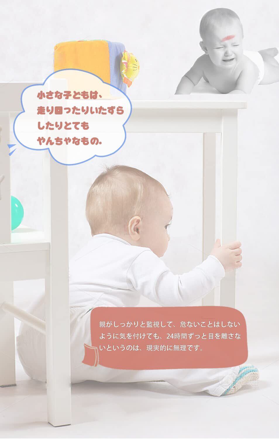 【クッション性が高い】お子さんの安全に注意を払う親なら、赤ちゃんや小さなお子さんがテーブルの角やタンスの角に頭をぶつけて大泣き、または怪我をすることはどうしても避けたいですよね。ハイハイしたり走ったり子どもの行動には予測が付きません。安全に基づいて作られたコーナーガードは、衝撃を効果的に吸収し、衝突などによるケガを防ぎます。