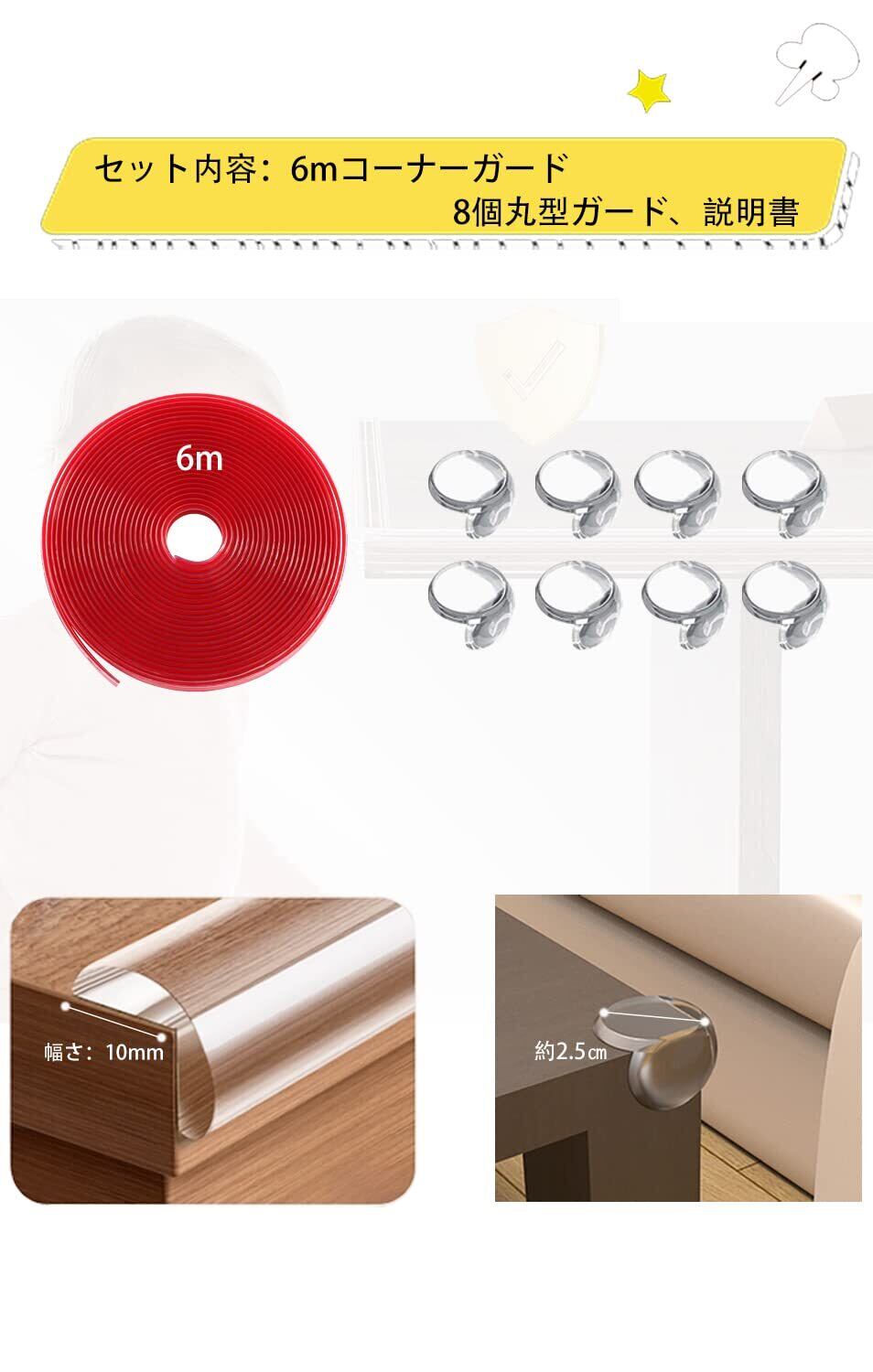 【商品仕様】<セット内容>コーナーテープ×6m、コーナーガード×8個。<素材>高品質PVC。<カラー>クリア。説明書付き。