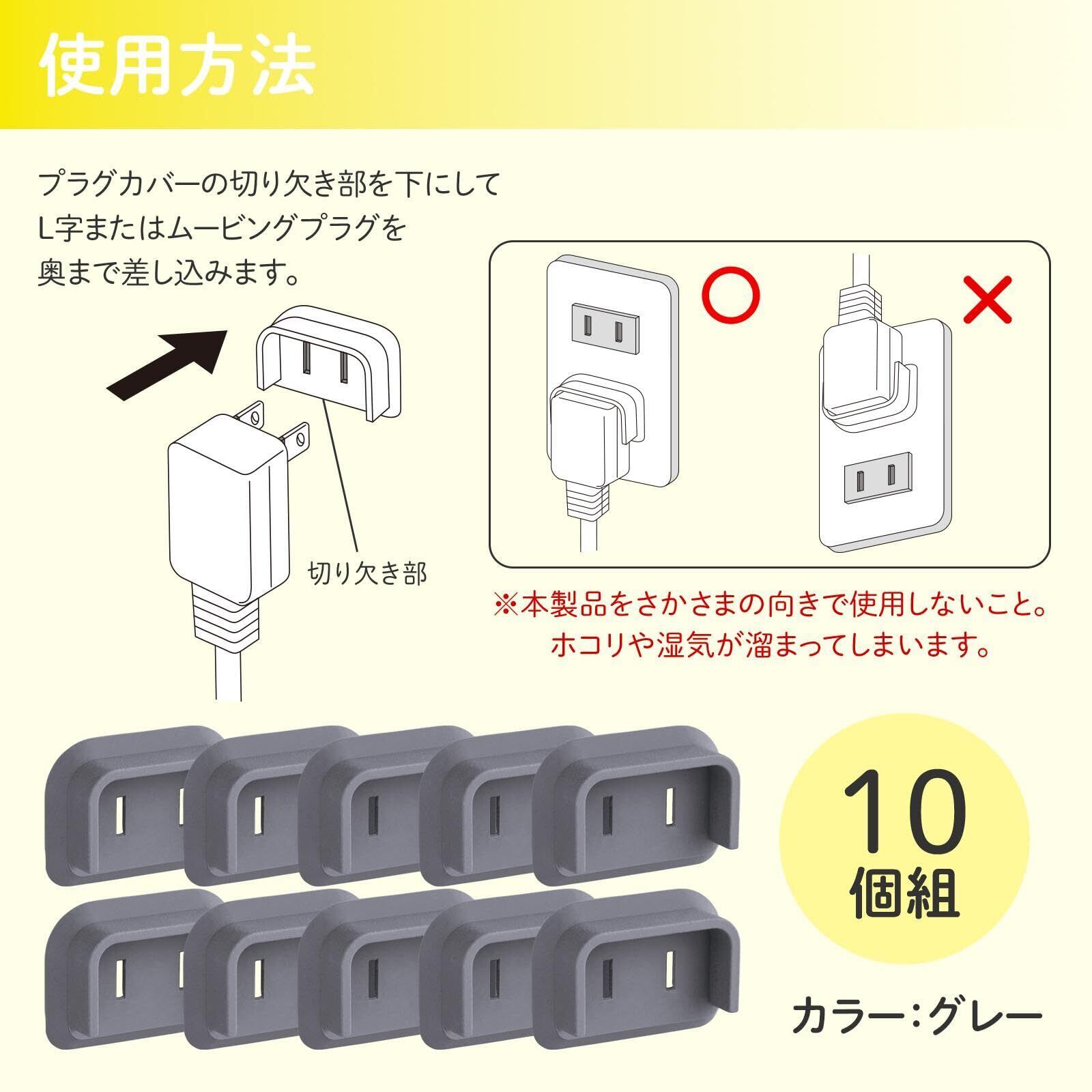 コモライフ 防災用 L字プラグカバー 10個組 グレー L字 プラグ カバー コンセント ホコリ 湿気 火災 対策