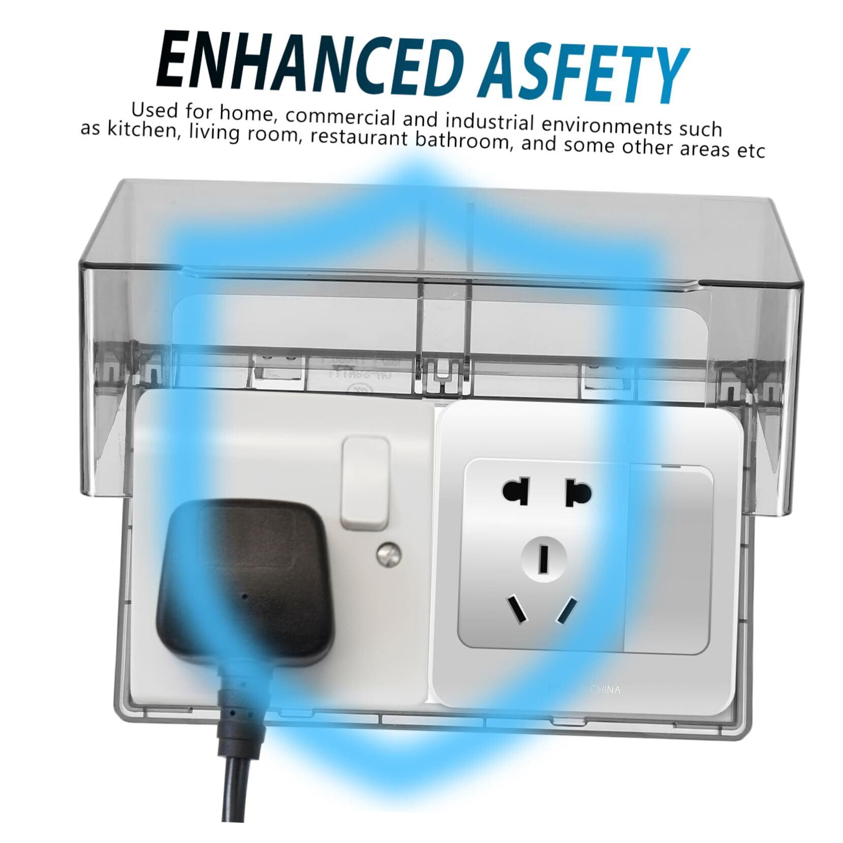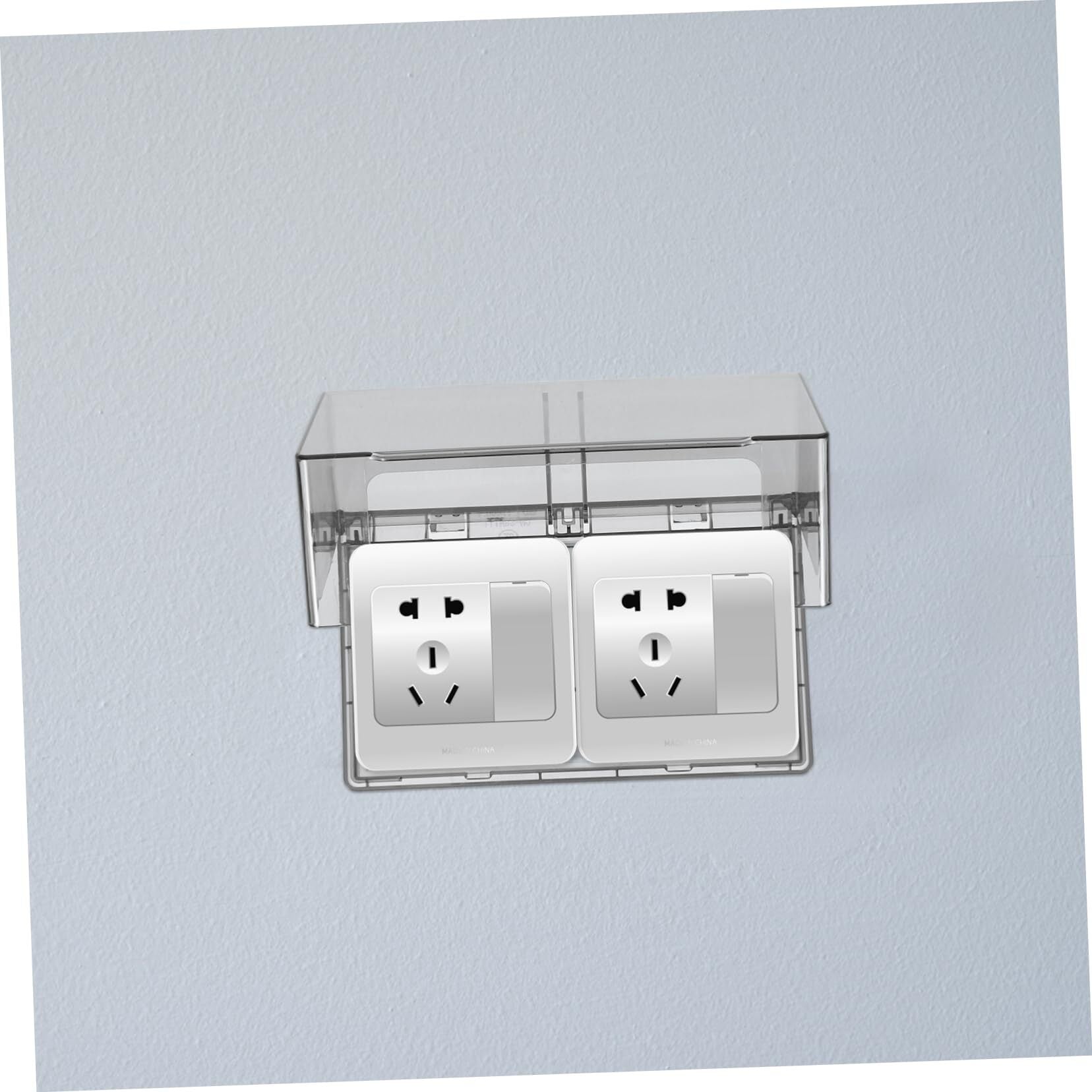 ERINGOGO 防水コンセントカバー 粘着式 2連スイッチソケット 保護カバー 厚手 防水機能付き 透明な黒 20.2X12X7.5cm
