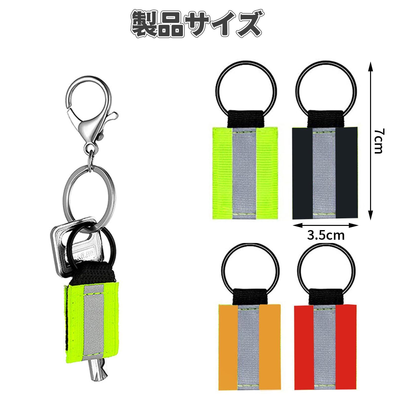 【商品詳細】:反射 キーホルダー 4点セットには蛍光グリーン、レッド、ブラック、オレンジの4色が含まれています。各色が独自の特徴を持ち、さまざまなユーザーの個別のニーズを満たします。