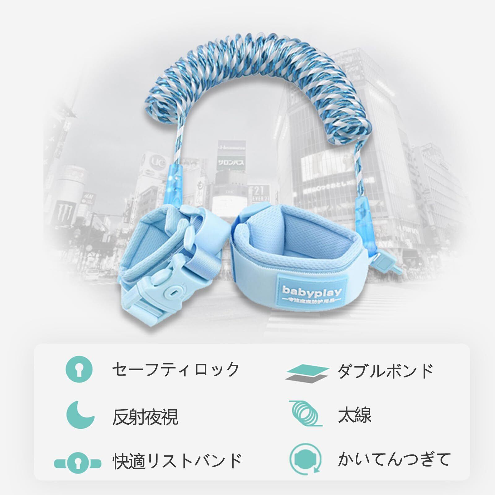 Joebo 迷子防止ハーネス 迷子防止紐1.5m/2m 夜に光を反射する 360°回転 伸縮可能 安全ロック付き 子供反失われた手首リンク縄 子供安全ハーネス 散歩 公園 お出かけ用品 迷子対策 (1.5M ブルー)