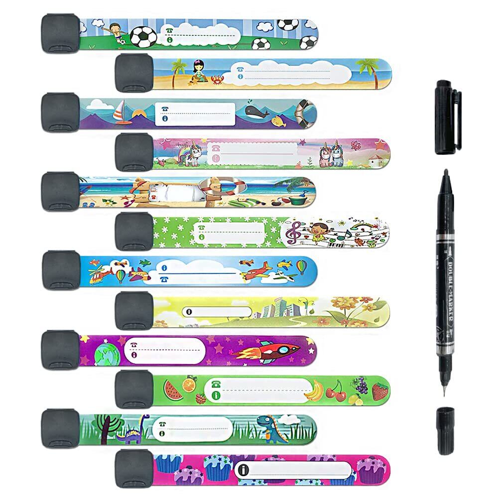 【12本セット】子供用IDブレスレット 迷子防止 防水 書き直し可 柔らかいリストバンド 名入れ可能 旅行 遠足 キャンプ フェス 海 プール スポーツ