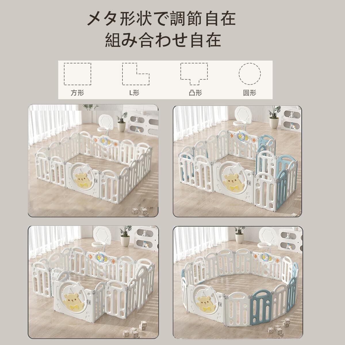 ベビーサークル 折りたたみ 187*150*61cm 16枚セット キッズランド プレイヤード ベビーサークル 大きめ 滑り止め付 ドア付き 安全設計 簡単組立 バスケットとボールとリング付き (ホワイト)