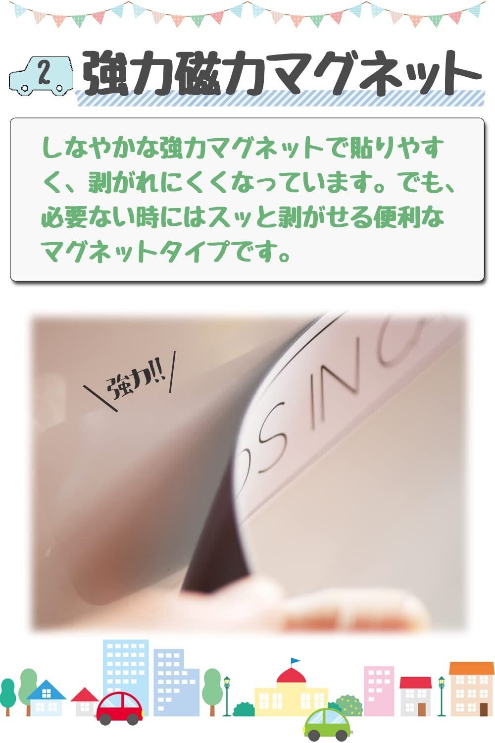 【 0.8mm厚強磁マグネット 】0.6mm厚よりもさらに厚い0.8mm厚強磁タイプで、剥がれにくくなっています。マグネットタイプなので、貼り付け時の失敗も無く、簡単に取り付けができます。また、何度でも貼り付け可能なので、必要な時だけ貼り付ける事も可能です。