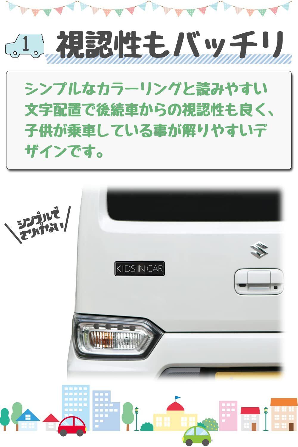 キッズインカー マグネット【 横長シンプルデザイン 】Kids in car 子供が乗っています Kids On Board ステッカー サイン シンプル ブラック (マグネット)