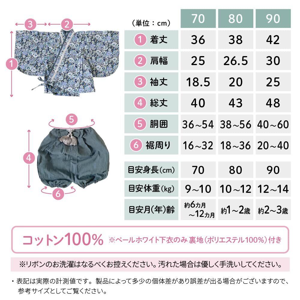 こだわりいっぱい!可愛すぎるベビー袴(2ピース)お子様の大切な記念日に、とっておきの和装フォーマルでお祝いしませんか?花柄にレースをあしらった上衣と、くすみカラーが上品な下衣の2ピースタイプ。