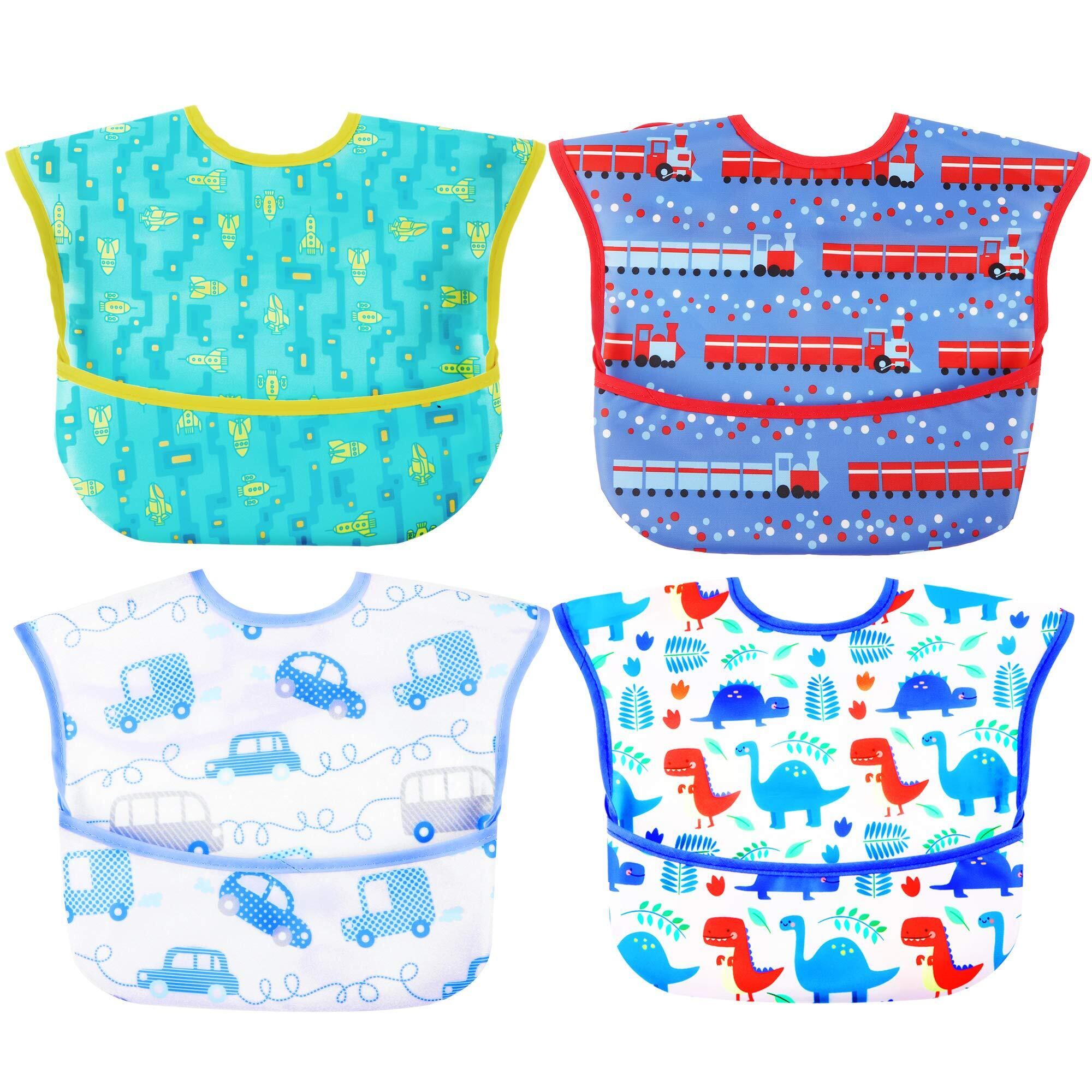 スリーマッシュルーム お食事用エプロン ベビー 離乳食 エプロン 3D 立体 保育園エプロン - 防水よだれかけ 赤ちゃん 4枚セット 速乾 洗濯機で洗える 名前を書ける 【保育士推奨】 保育園用 男の子 女の子
