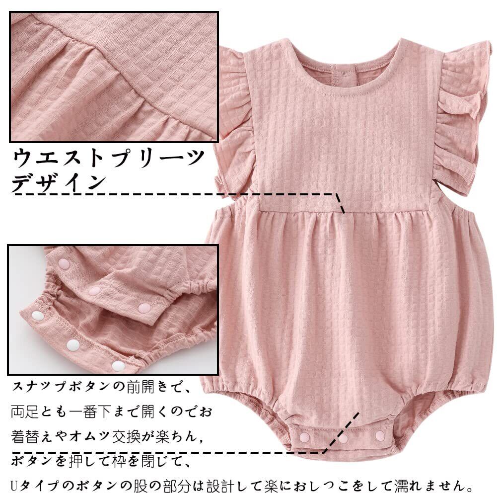 Reegoo Peter ベビー服 女の子 ボディスーツ 夏 ロンパース ノースリーブ 赤ちゃん服 綿100% 新生児服 ヘアバンド かわいい 59 66 73 80