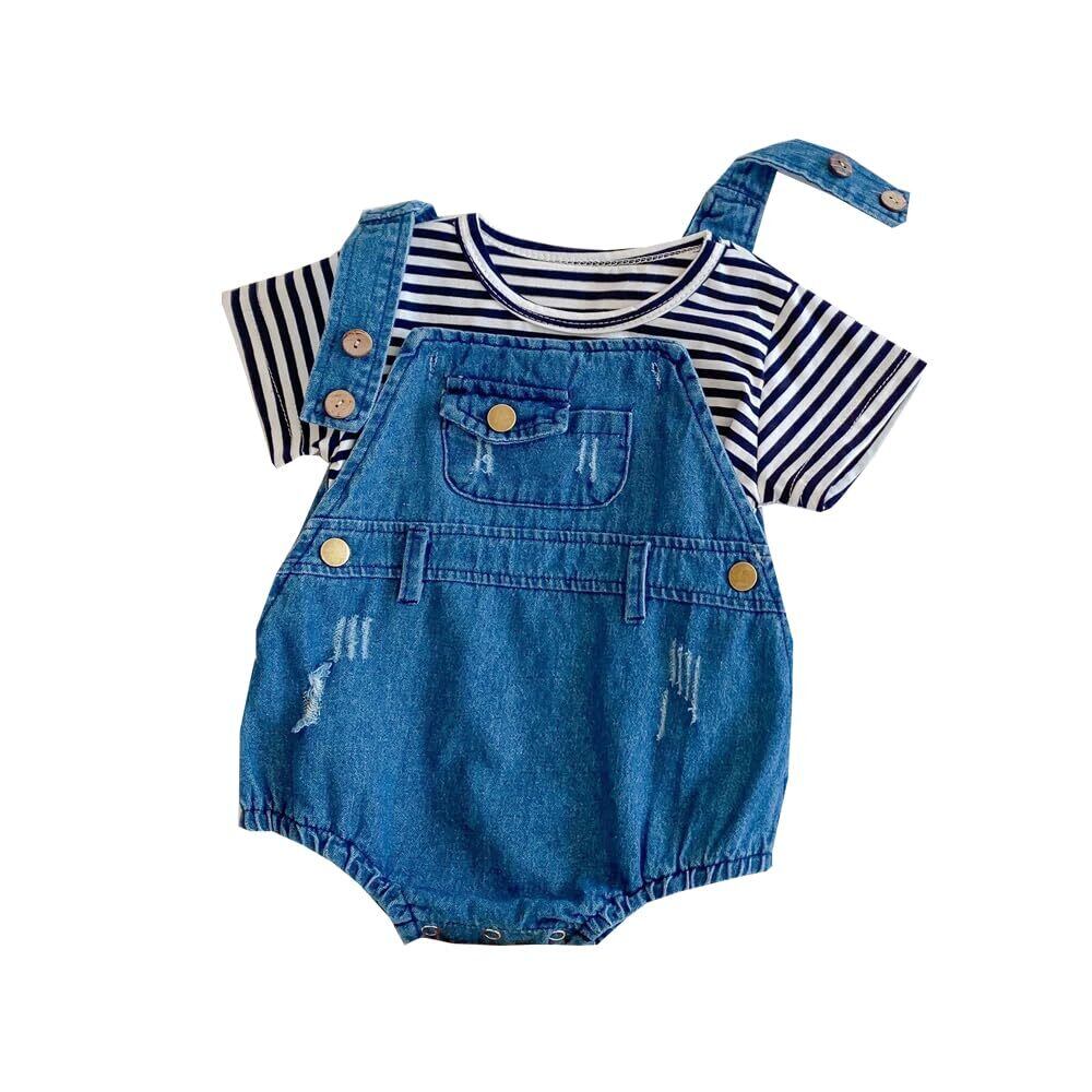 Babykoiベビー服サロペットデニム夏服ボディスーツ男の子女の子カバーオール半袖Tシャツ2点セット赤ちゃん七五三バースデー出産準備贈り物ブルー90㎝
