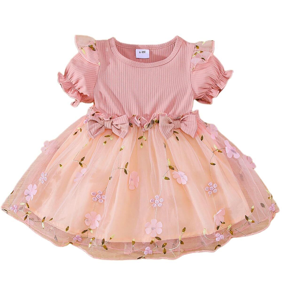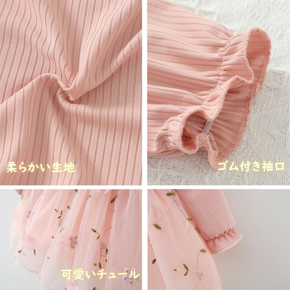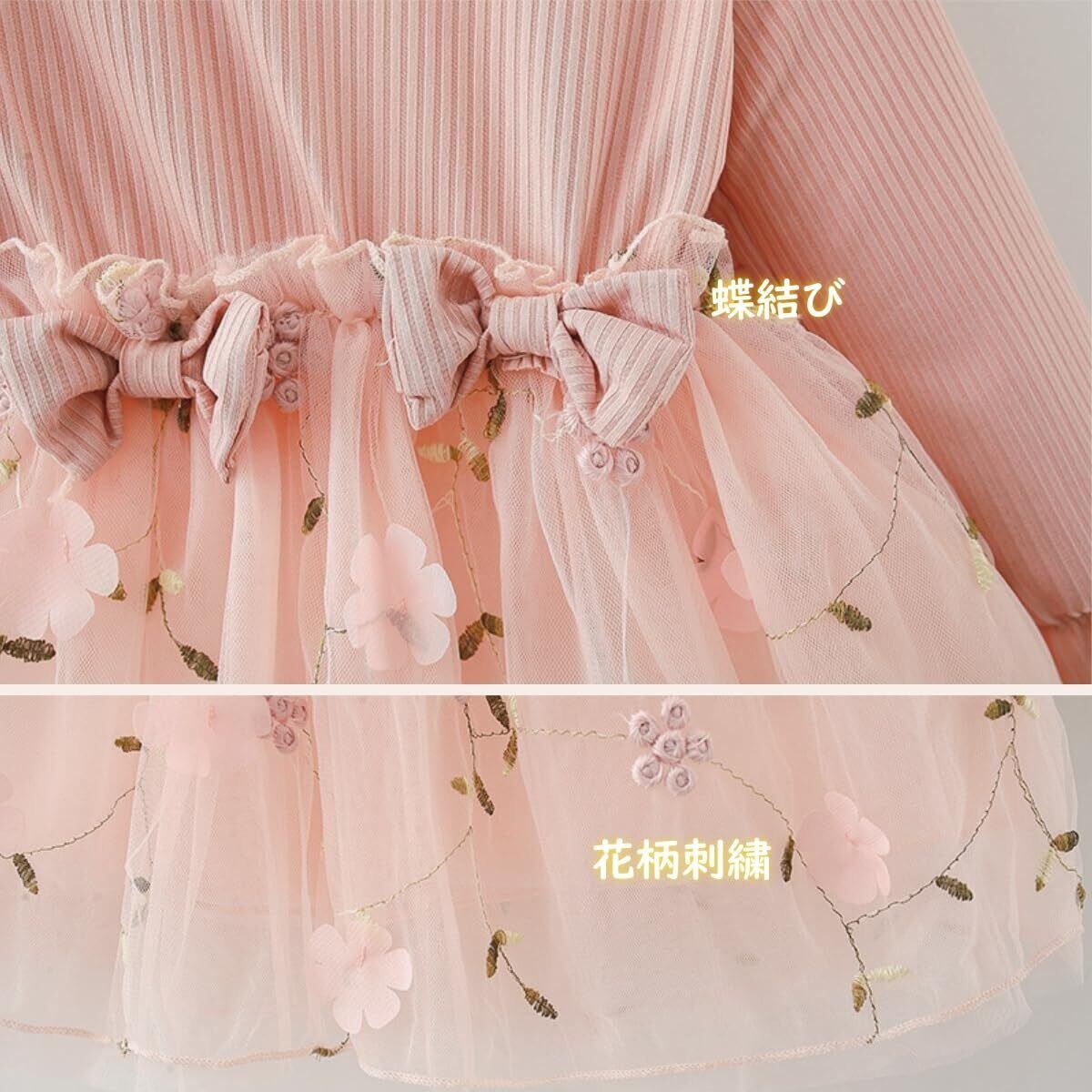 VNGOLERRY ワンピース ベビー 女の子 ガールズ キッズ 長袖 半袖 チュールワンピース ベビー服 レース 刺繍 ドレス 入園式 100日祝い 七五三 結婚式 春 夏 秋 冬 80 90 100 110 120ピンク