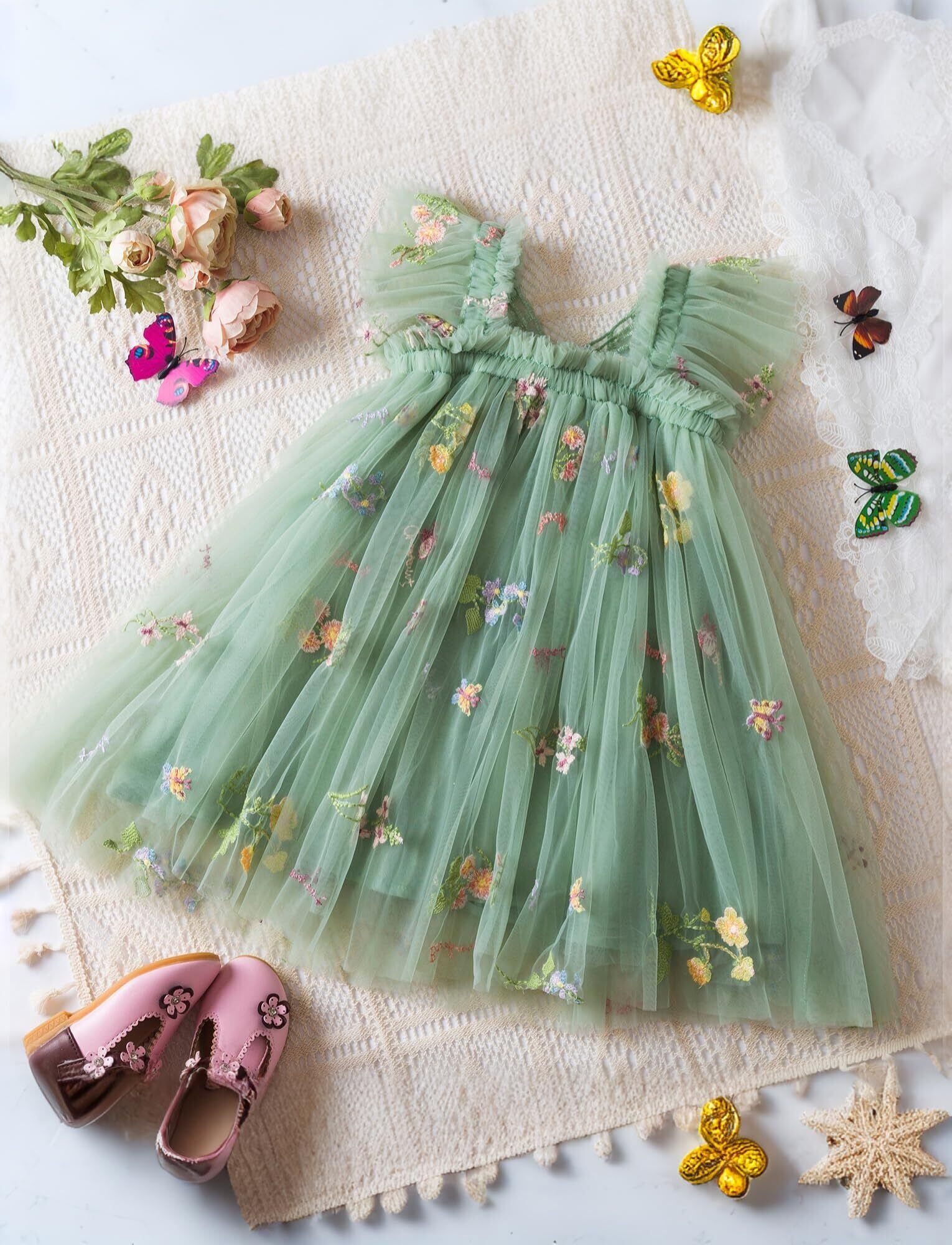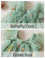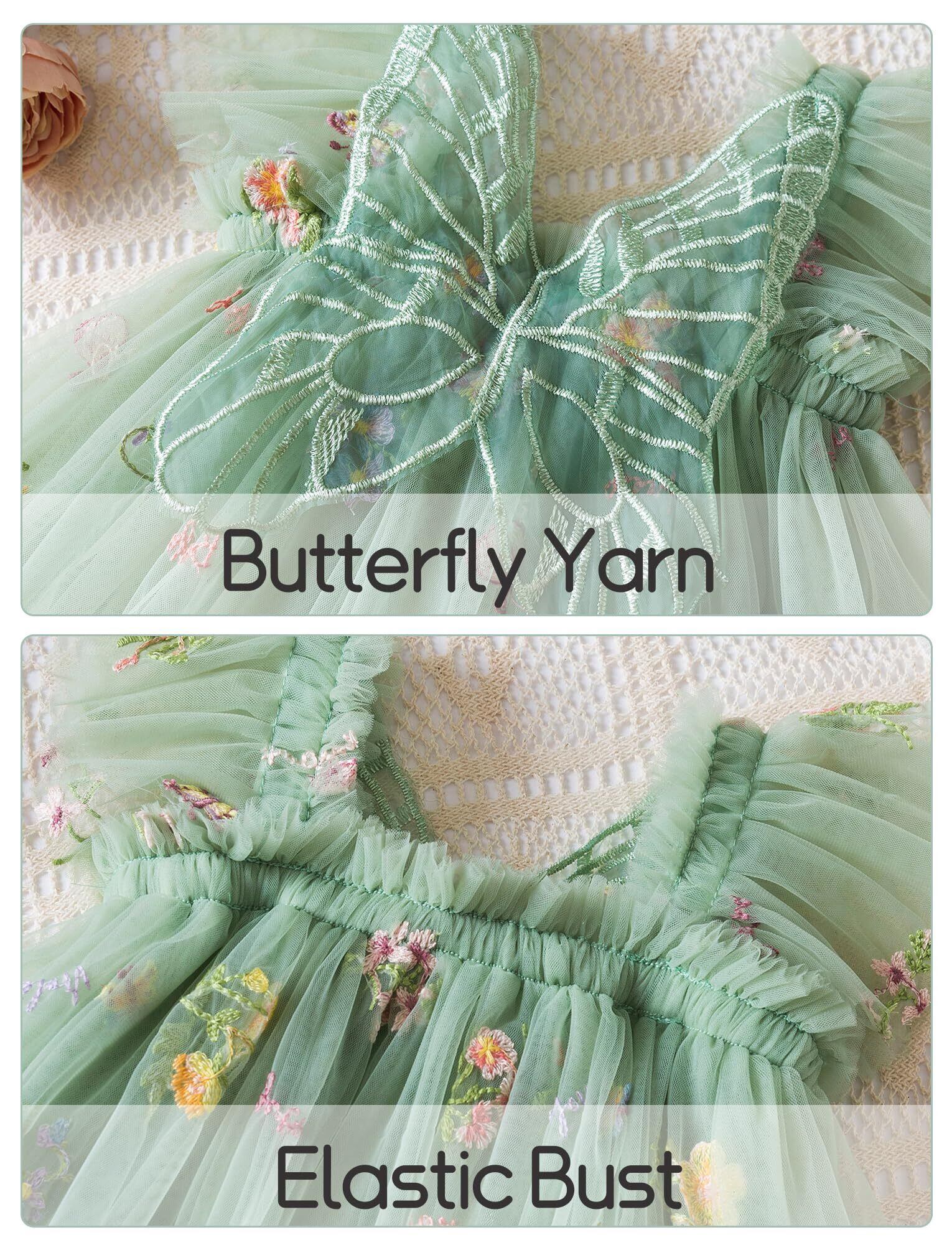 Maeau ベビー服 女の子 チュールワンピース チュチュドレス 吊りスカート 夏 ふんわり 可愛い 花 刺繍 蝶 プリンセス風 記念撮影 誕生日祝い