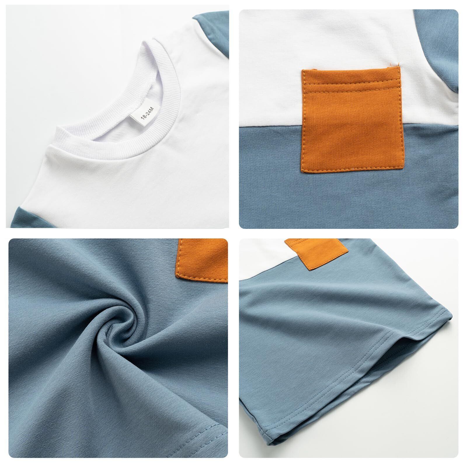 Volunboy ベビー服 男の子 セットアップ 夏 子供服 半袖 tシャツ ショートパンツ 上下セット 無地 配色 切り替え カジュアル 普段着 ルームウェア 70-100cm