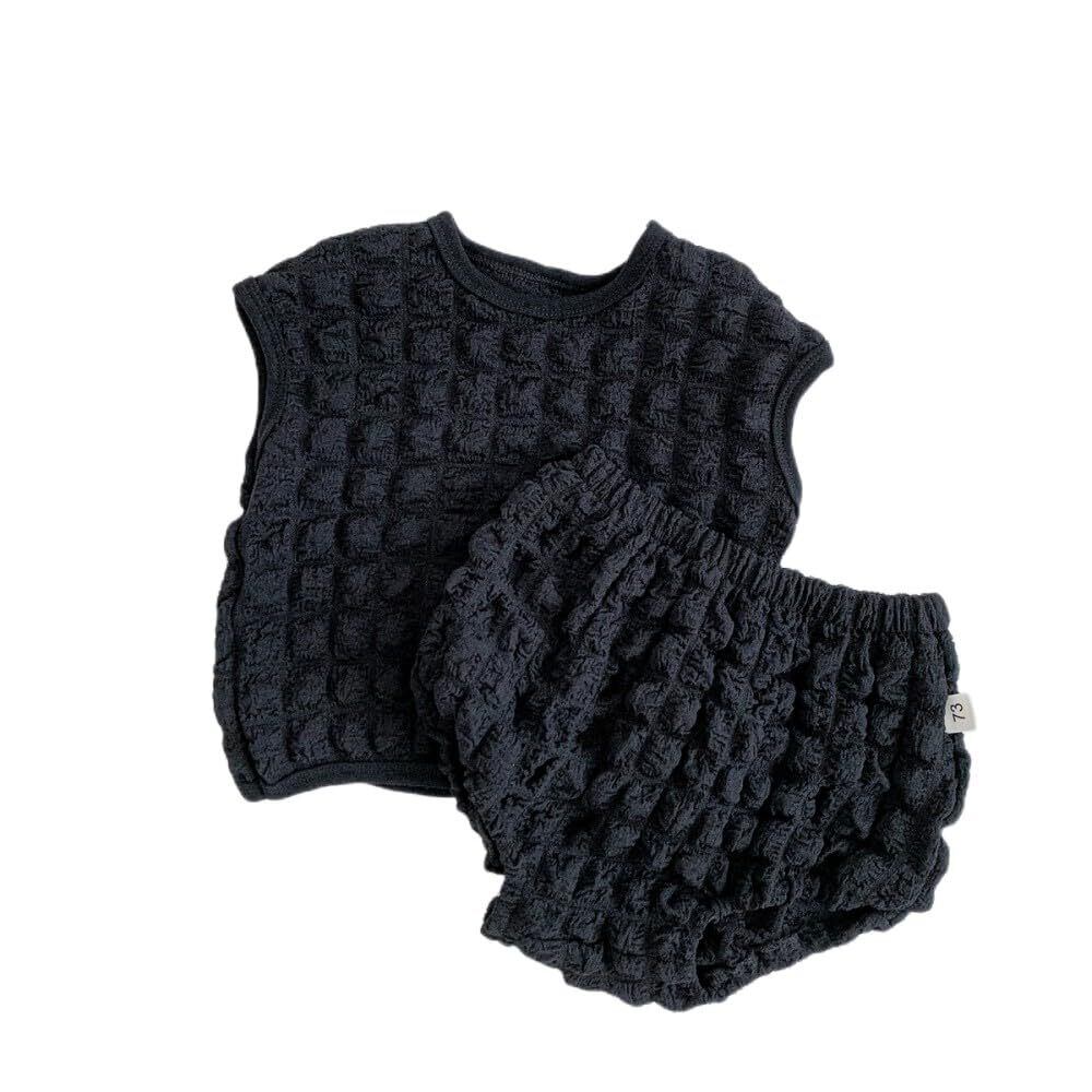 VNGOLERRY ベビー服 女の子 セットアップ 夏 上下セット ぽこぽこ ポコポコ ポップコーン ベビー 幼児 赤ちゃん キッズ 70 80 90 100 可愛い ガールズ シンプル エンボス 凸凹 コットン ホワイト ブラック おしゃれ