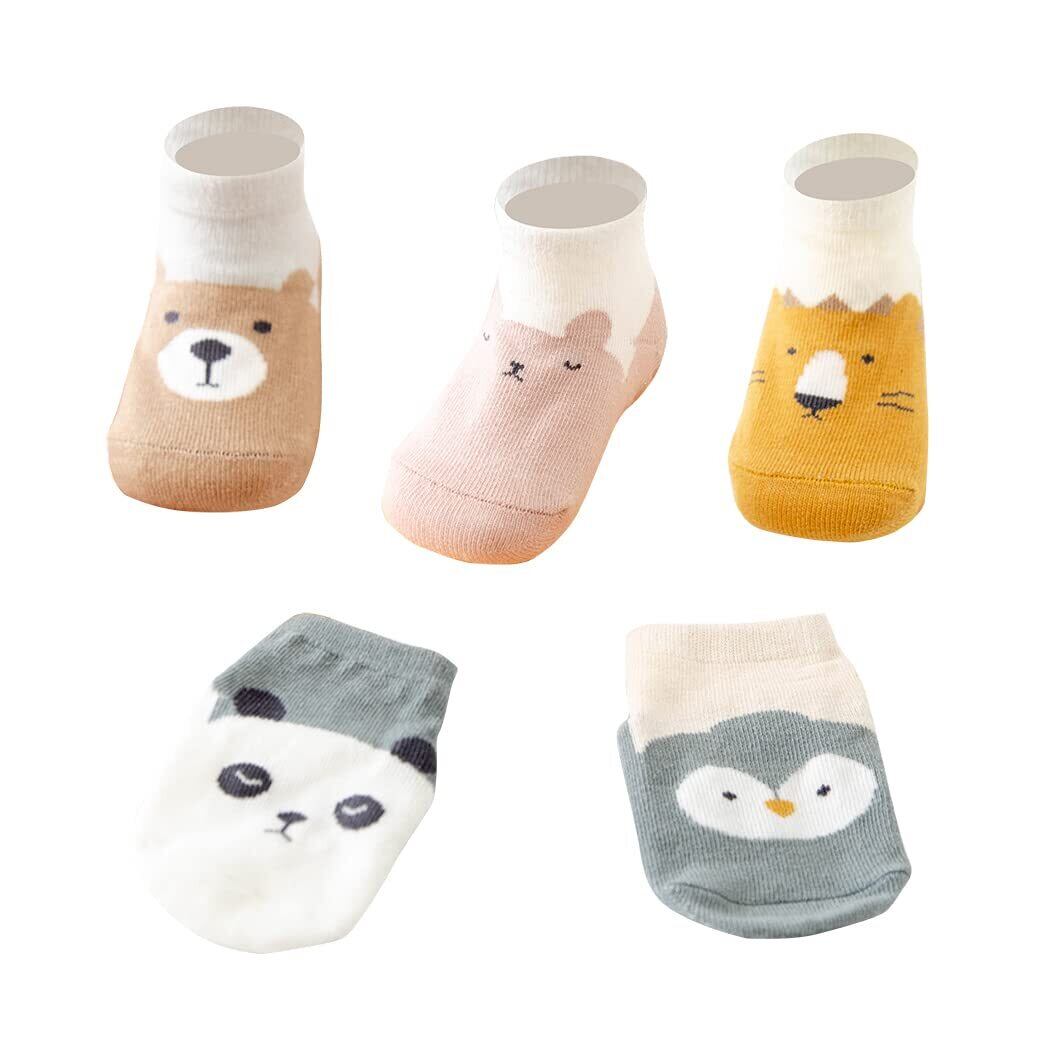 MOMSMENU ベビー ソックス 赤ちゃん 靴下 綿 通気性 柔らかい 滑り止め付き 春 夏 秋 冬 5足セット