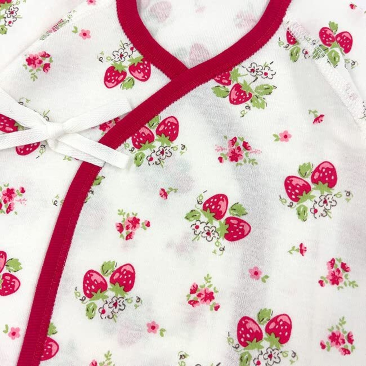 赤ちゃんが可愛く映えるイチゴ柄や小花柄をドットをプリントした、新生児肌着6枚セットです。