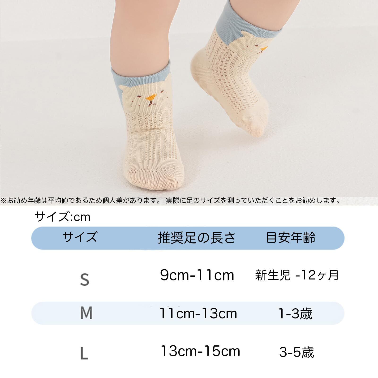 MOMSMENU 赤ちゃん靴下 夏 メッシュ ベビー ソックス 滑り止め付き 綿 通気性 柔らかい 可愛い 履きやすい 5足セット