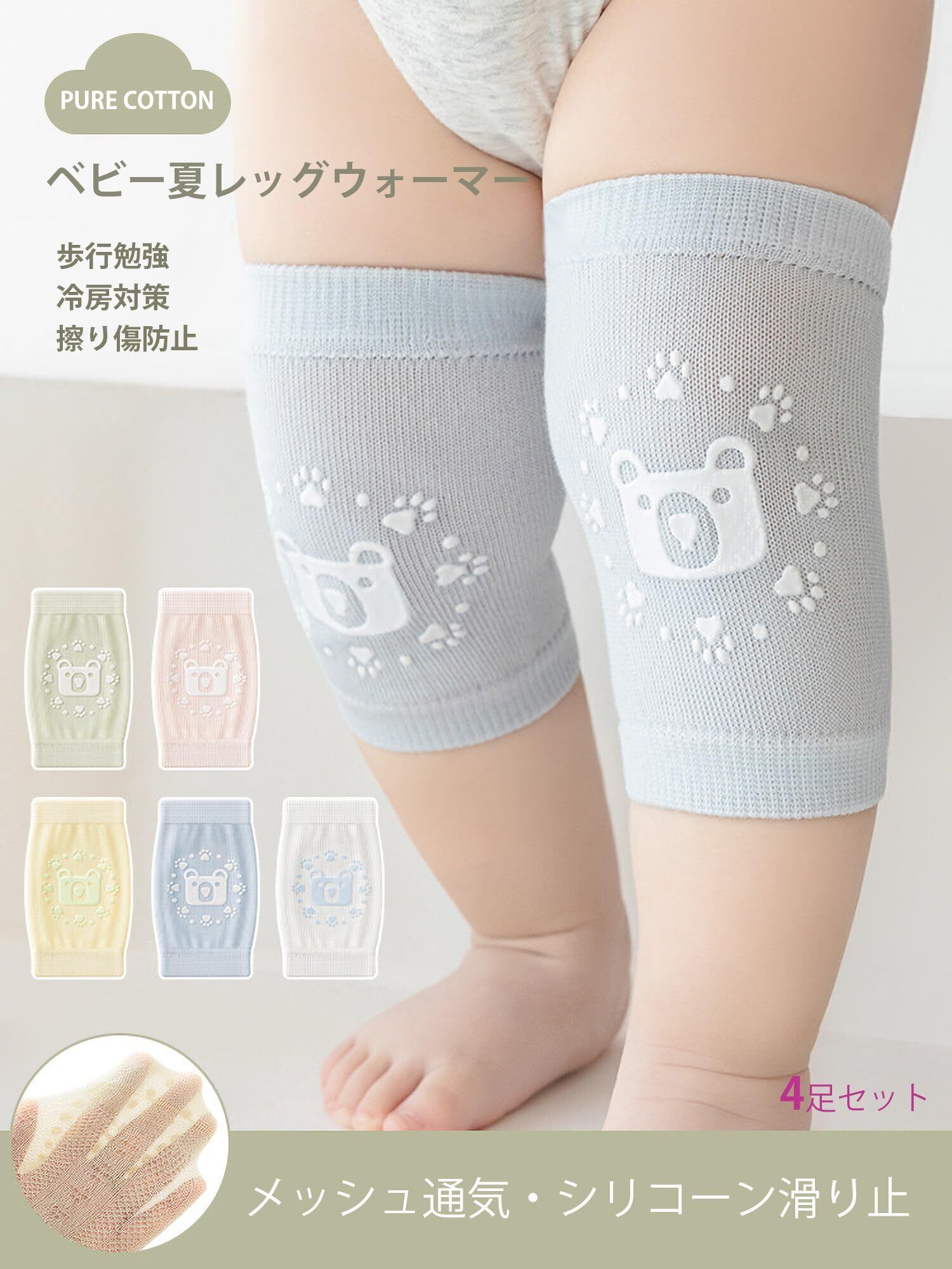 Buffydeer ベビーレッグウォーマー 夏 赤ちゃん ニーパッド 幼児用 膝当て 男の子 女の子 ニーパッド 4足セット 歩行勉強 冷房対策 擦り傷防止 シリコーン滑り止 めメッシュ 通気 綿