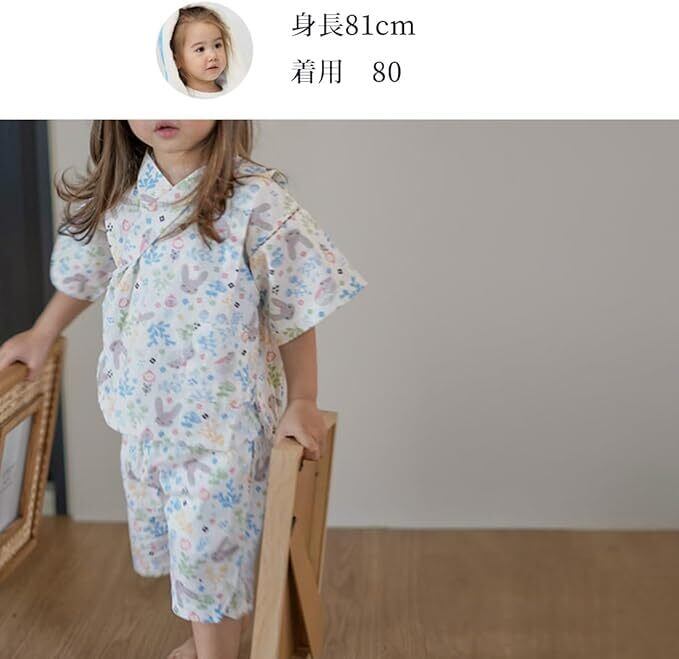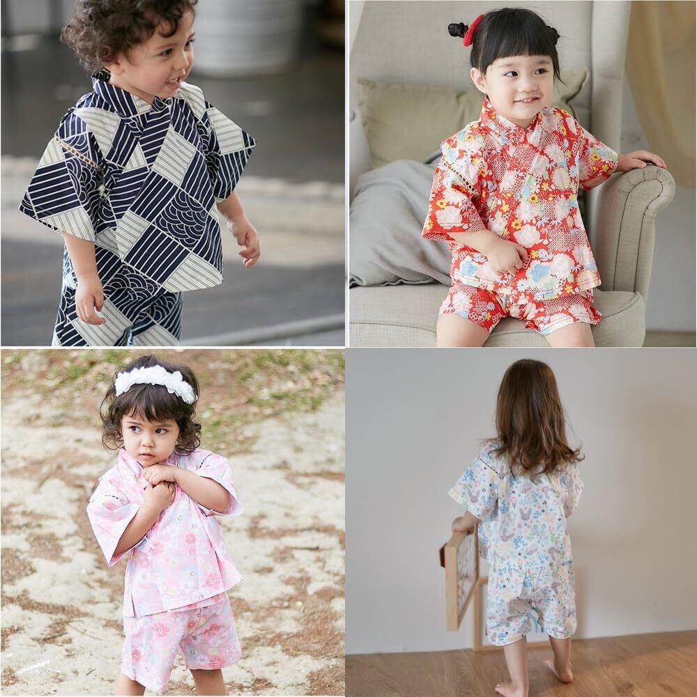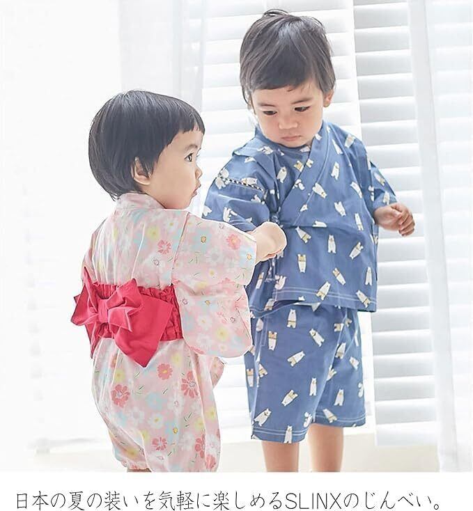 SLINX ベビー 甚平 子供 上下セット 和柄 ベビー服 男の子 女の子 男児 女児 じんべい 花火大会 夏祭り夏 お盆休み 夏休み セットアップ 涼しい 部屋着 パジャマ HF03