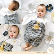 ✨凛々かわ️ベビー紋付✨丁寧にあしらわれた家紋刺繍が品よく映える上衣と、洗練された縞模様がクールな下衣の2ピースタイプのベビー紋付が登場。