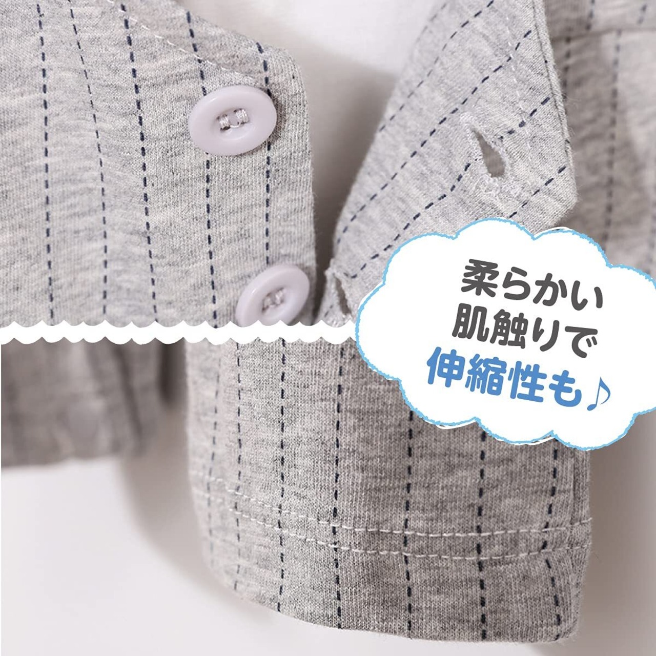 【両面デザインで高級感アップ】背面も表地と同じ素材を使用し、360度どこから見ても上品な仕上がりに。 【タグ内づけ仕様】洗濯タグなどはすべて肌に触れにくい内側配置で、赤ちゃんの敏感肌にもやさしい仕様。 【重ね着風フォーマル】蝶ネクタイ付きベスト風デザインが、結婚式や記念撮影でも映える上品な印象を演出。 【前開きでお着替え簡単】スナップボタン仕様で、おむつ替えもラクラク。綿素材で快適な着心地。 【ギフトにも最適】お宮参り・お食い初め・初節句・出産祝いなど、様々なイベントで活躍するフォーマルロンパース。