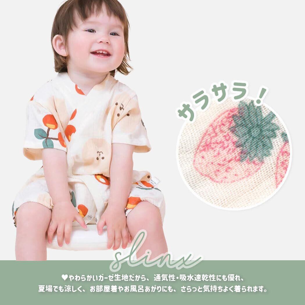 SLINX ベビー 男の子 女の子 浴衣 甚平 ロンパース カバーオール 夏 赤ちゃん 花柄 ベビー服 ロンパース半袖 前開き 子供服 綿 やわらかい HF10
