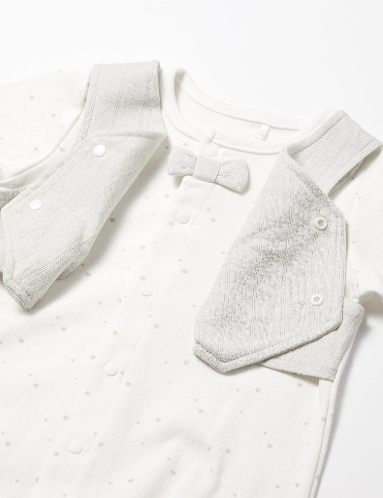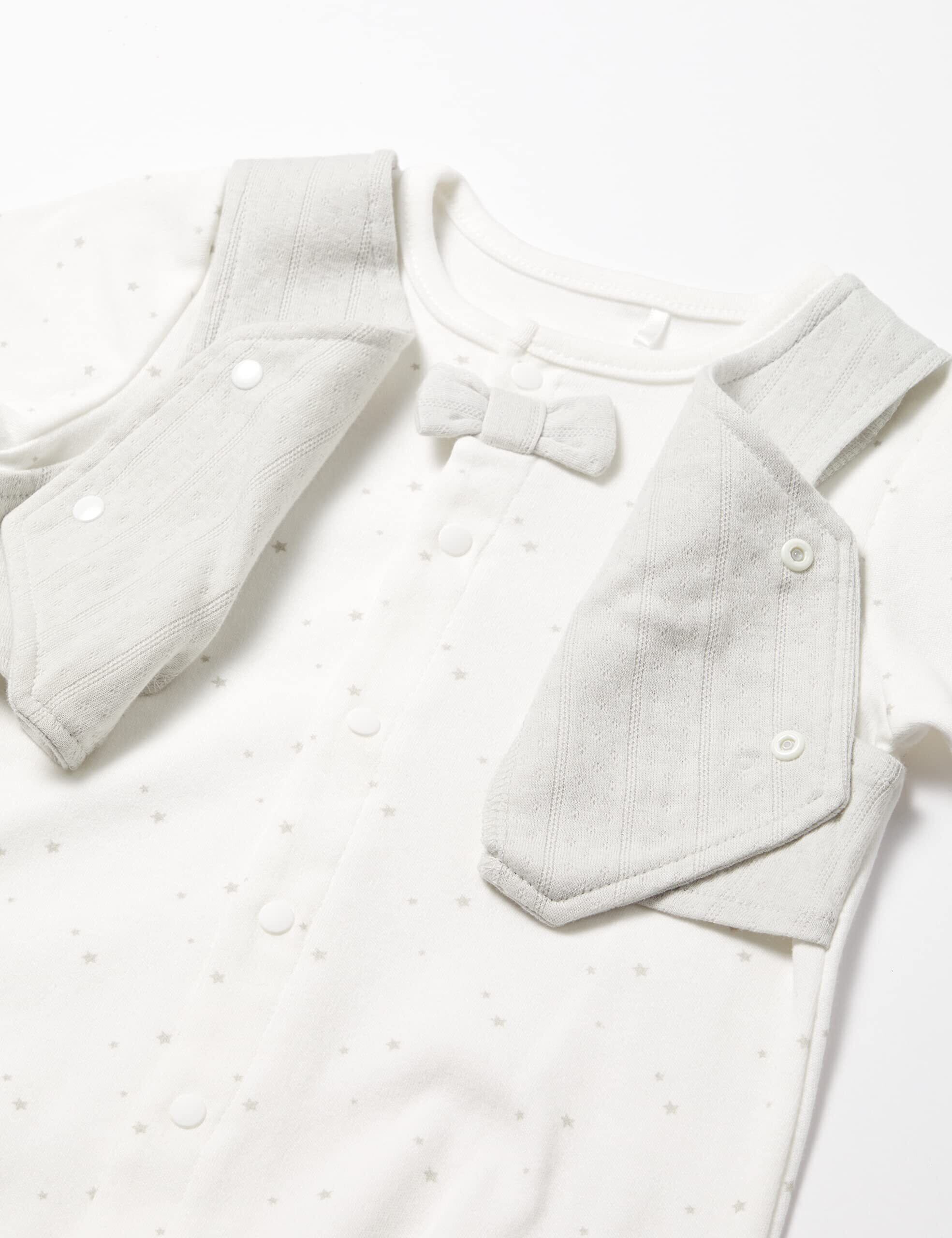 前開きタイプなので、お着替えがラクラクです。お着替えが多いベビーとママにはとっても嬉しいポイントです。