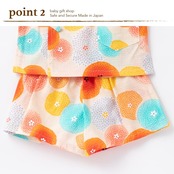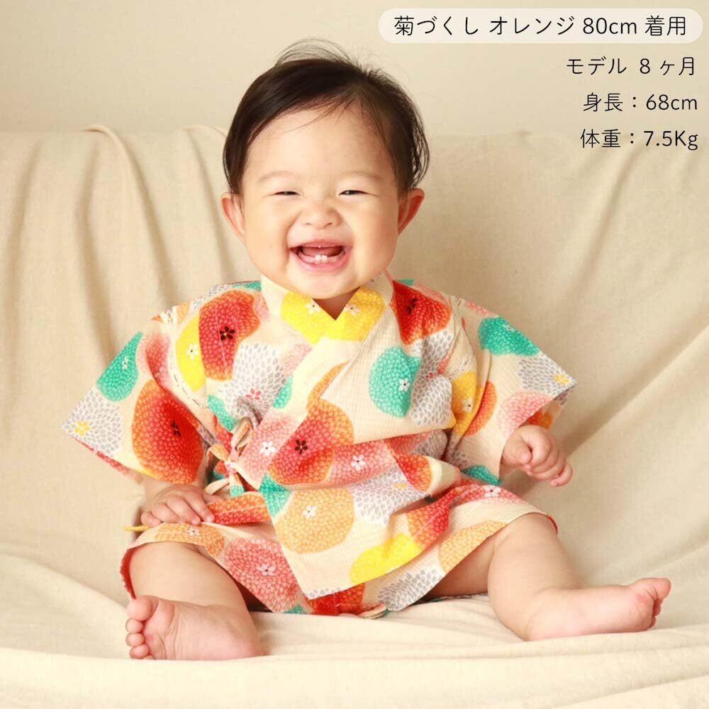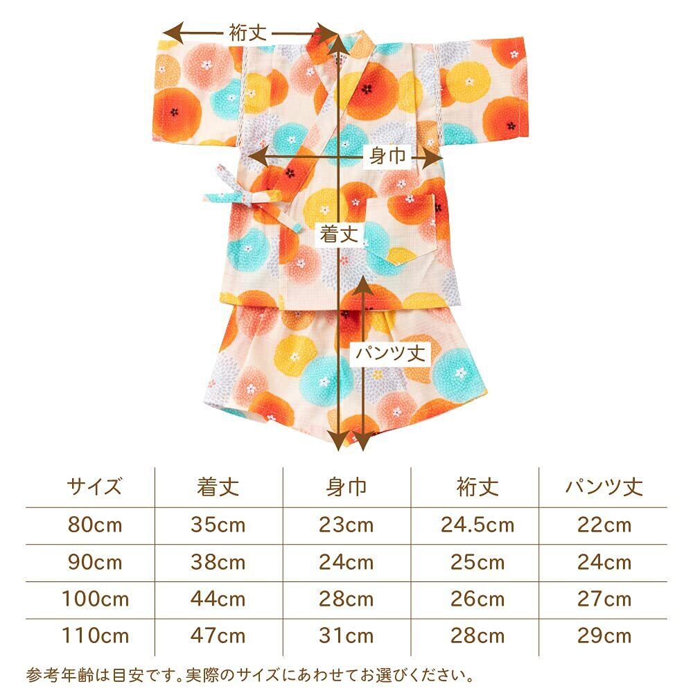 【サイズ】80㎝:着丈35㎝・身巾23㎝・裄丈24.5㎝・パンツ丈22cm 90㎝:着丈38㎝・身巾24㎝・裄丈25㎝・パンツ丈24cm 100㎝:着丈44㎝・身巾28㎝・裄丈26㎝・パンツ丈27cm 110㎝:着丈47㎝・身巾31㎝・裄丈28㎝・パンツ丈29cm 【生地】さらりとした清涼感のある綿織物です。生地が肌にはりつかず涼しく、軽くて高級感のある素材です。 【カラー】全4カラー:ピンク、ブルー、オレンジ、パープル(生地の色は淡いピンクです) 【安心の日本製】生地から仕上げまで安心・安全の日本製。ベビー衣料専門メーカーとして創業 昭和34年以来、赤ちゃんが着るものだから安心・安全・高品質を保つため自社一貫生産にこだわり、生地の裁断から仕上げまで大阪の自社工場で1枚・1枚丁寧に縫い上げています。