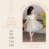 「特別な日をもっと素敵に!ふわふわチュールが可愛いセレモニードレス」 お誕生日や結婚式、発表会など、特別な日に着せたい、ふわふわチュールが可愛いセレモニードレスです。上品な光沢感が華やかさを演出します。柔らかな素材を使用しており、お子様にも優しい着心地。大切な思い出に残る一日を、このドレスでさらに特別な時間に。