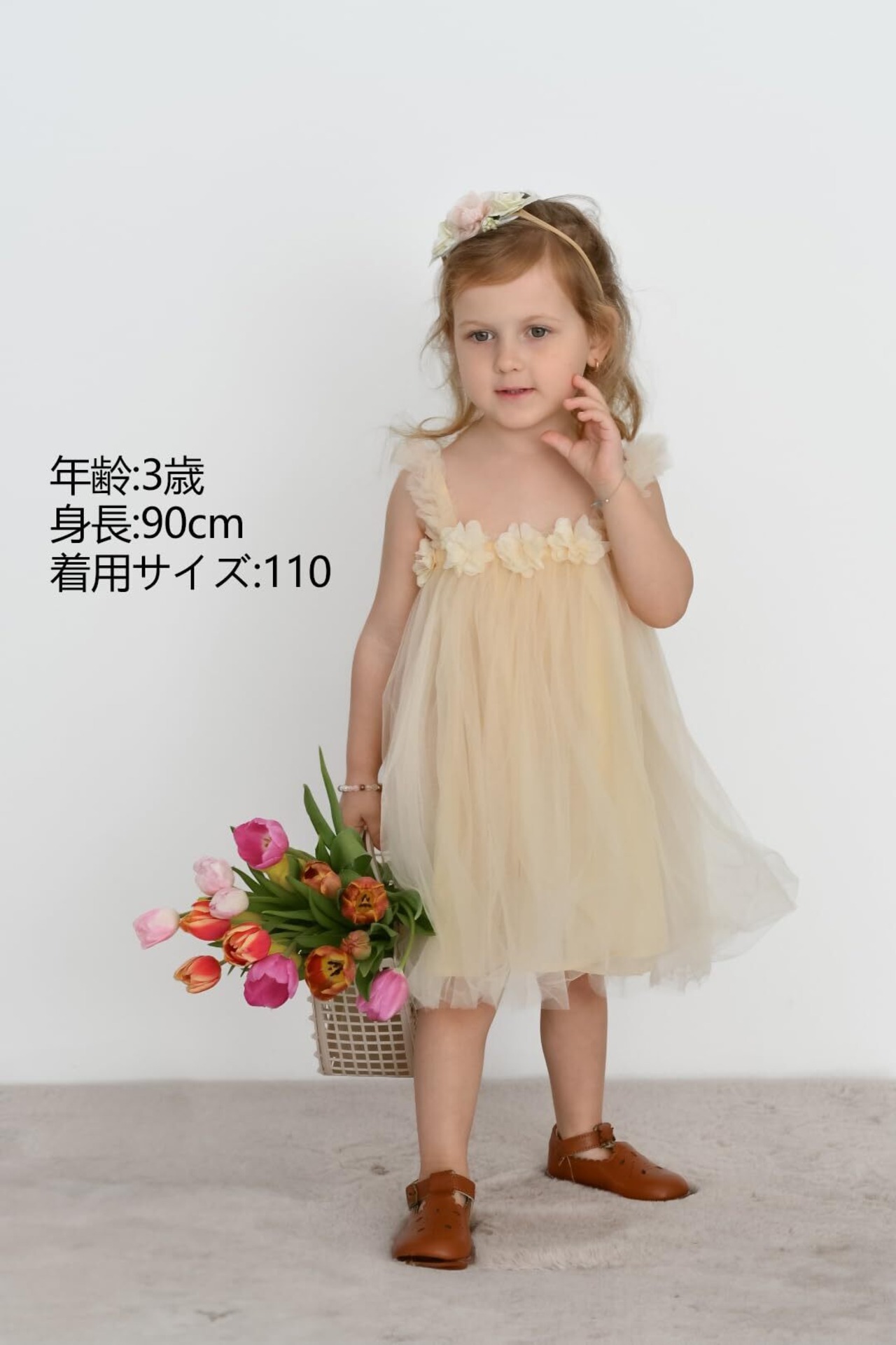 Miipat ベビードレス 女の子 ヘッドバンド付き チュール ワンピース チュチュスカート 赤ちゃん フォーマルドレス 可愛い 誕生日 記念撮影 80-120cm