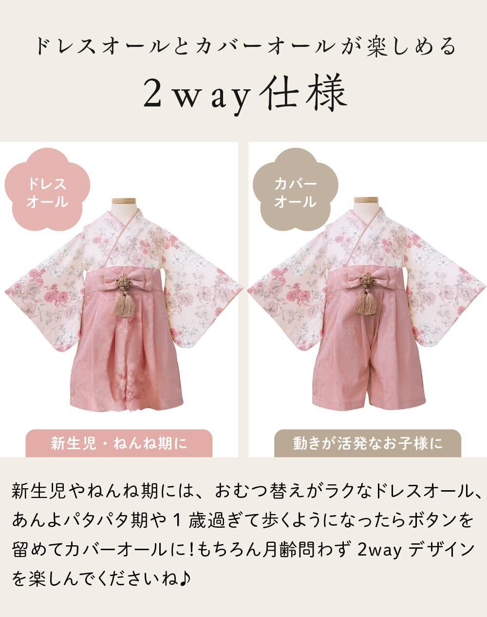regalo ベビー 袴 ロンパース 80~90cm 女の子 男の子 和装 フォーマル 赤ちゃん お宮参り 百日祝 初節句 花恋 かれん