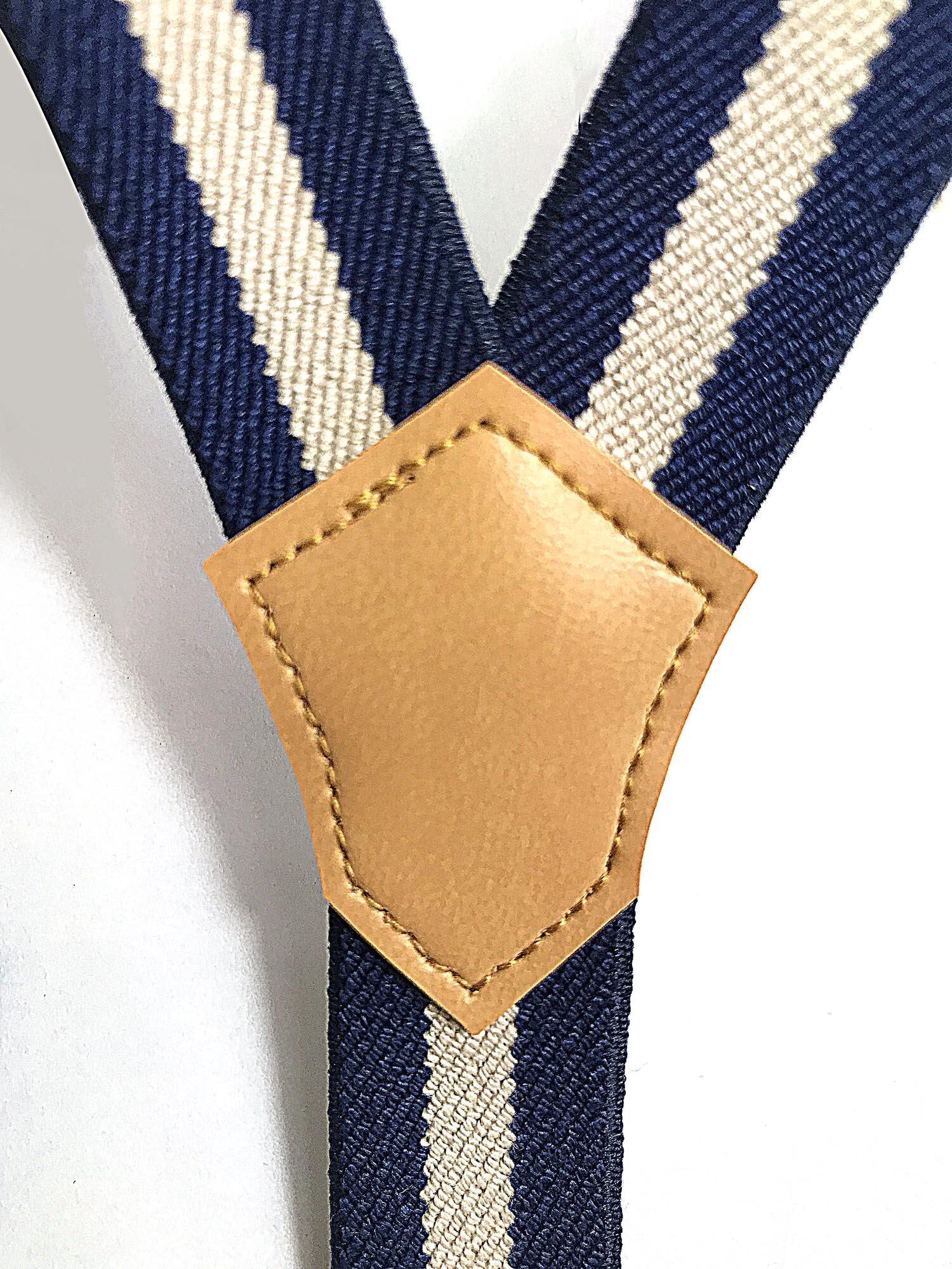 【日本製】キッズ用 サスペンダー (ボーダー ) 紺×ベージュ 子供 対応身長:80〜110㎝ Y型
