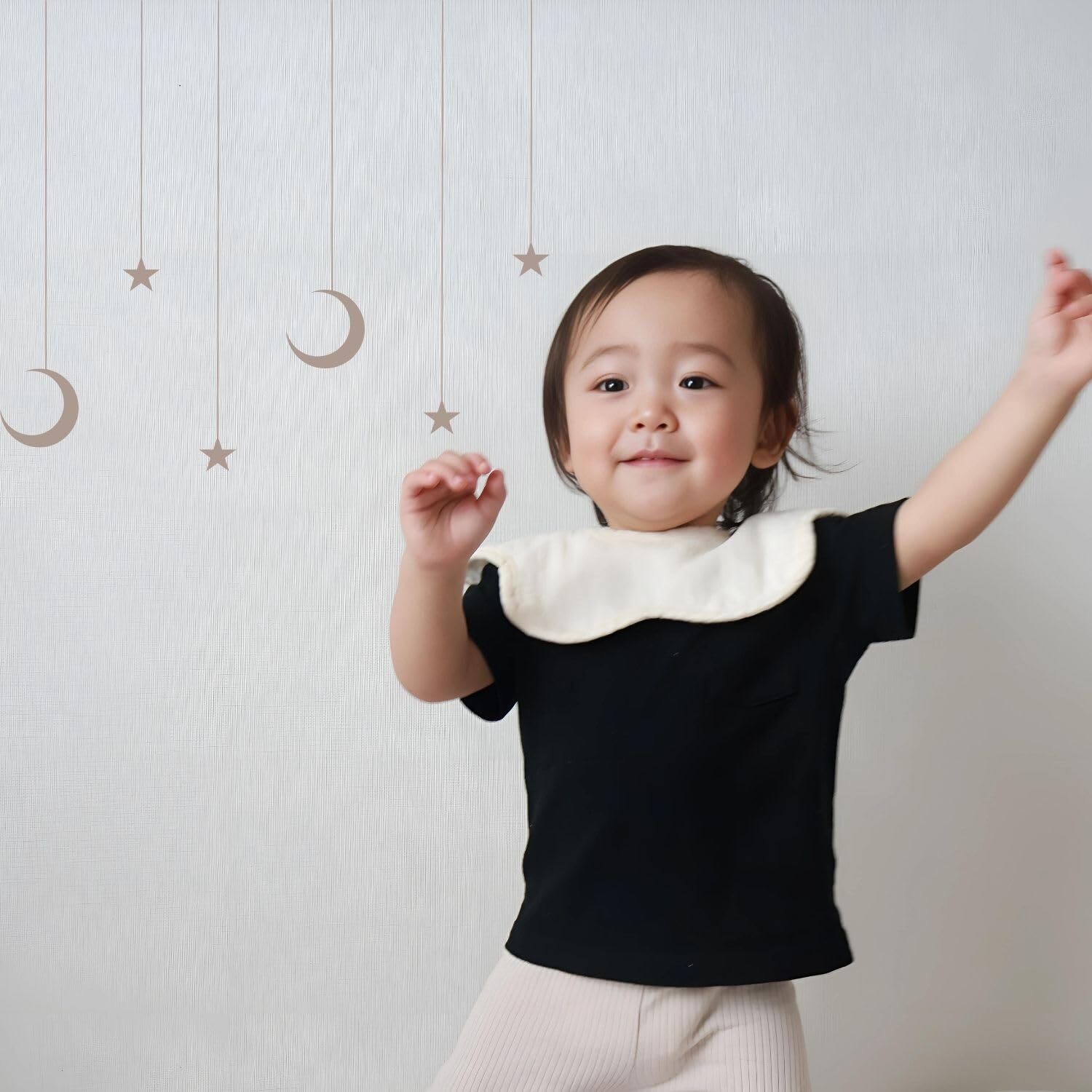 Ella. 360° 防水スタイ よだれかけシンプル おしゃれ 4枚セット ベビー 赤ちゃん コットン 綿 防水シート 花形 くるくる 染みない スナップボタンスタイ かわいい 綿100% ベビービブ 男の子 女の子 360 セット
