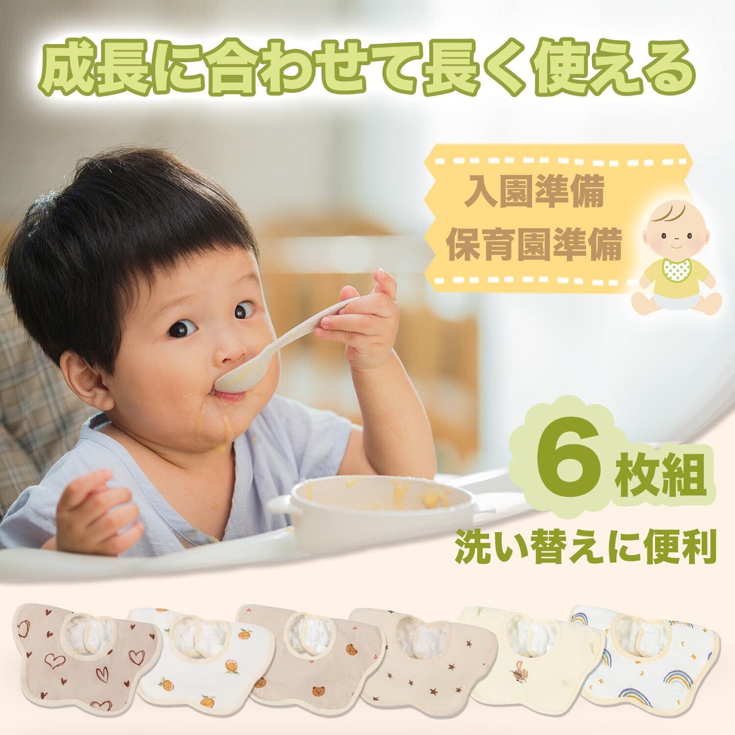 【洗い替え便利】6枚があれば頻繁に取り替える手間も省き、入園準備や育児生活の必需品。デザインが男女問わず使えて、かわいい。サイズ:25 x 27cm ;首回り直径:8.5cm;洗濯方法:丸洗い可能。繊細な赤ちゃんの肌に「触れる」ものだから、こだわりの厳選素材を使用しています。※色について:ハート柄とクマ柄のものはグレー系でした。予めご了承ください。