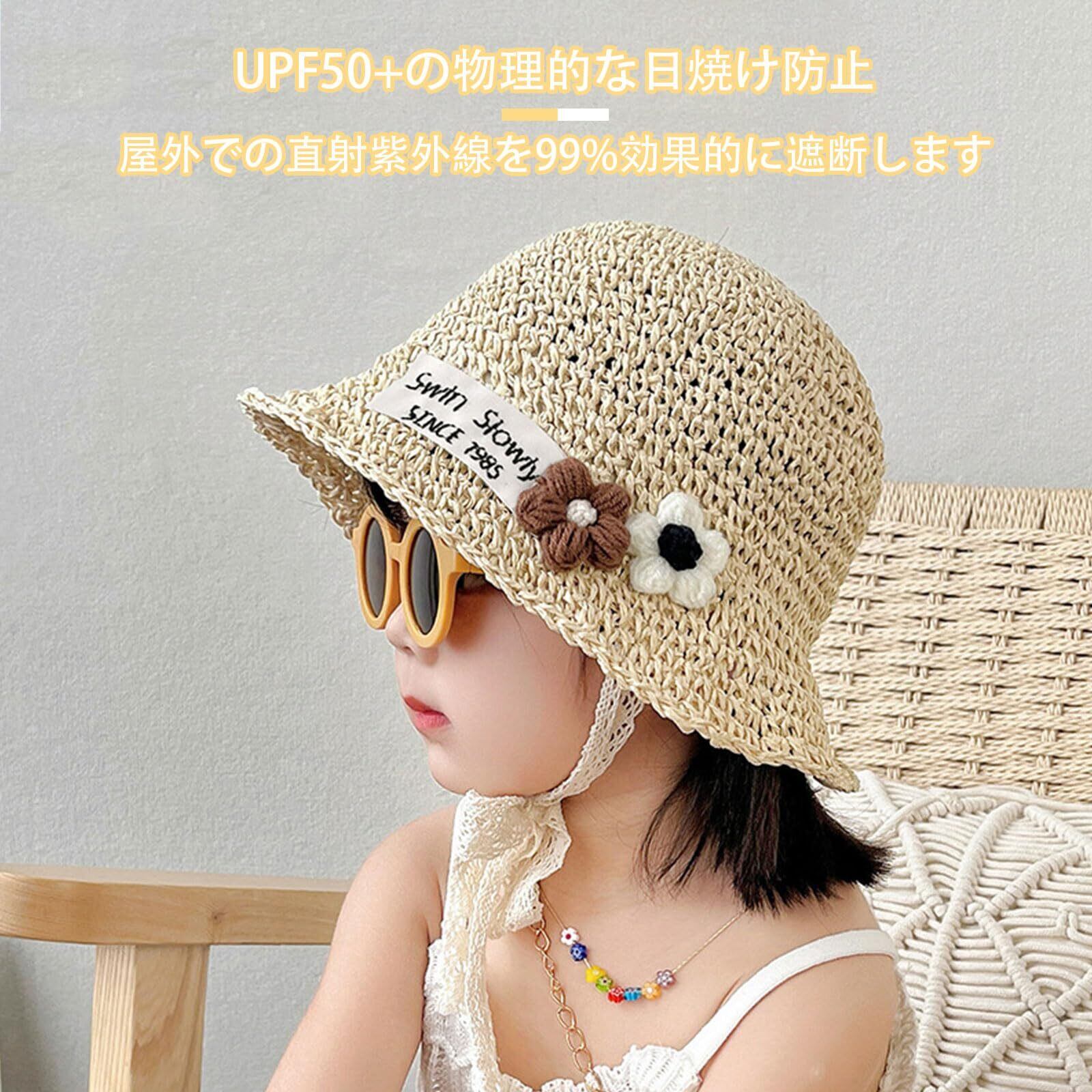 Umeloeo 麦わら帽子 子供 ベビー 帽子 可愛い 赤ちゃん 日除け帽子 つば広 uvカット ベビー ハット バケットハット サンハット 日焼け止め 紫外線対策 女の子 キッズ 新生児 夏 旅行 お出かけ ビーチ 海水浴