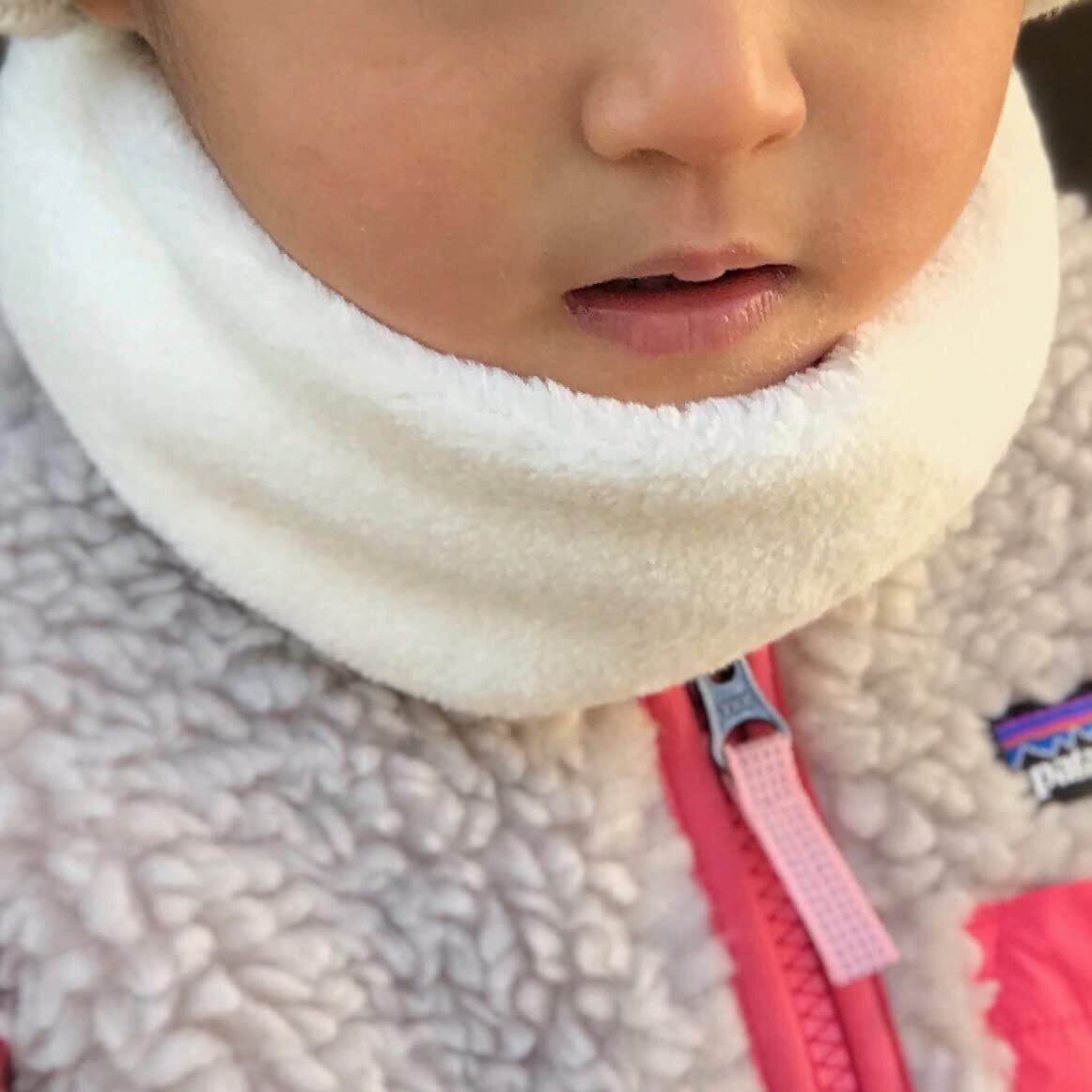 キッズには、首にフィットする幅なので、コーディネートしやすいサイズ感になっています。