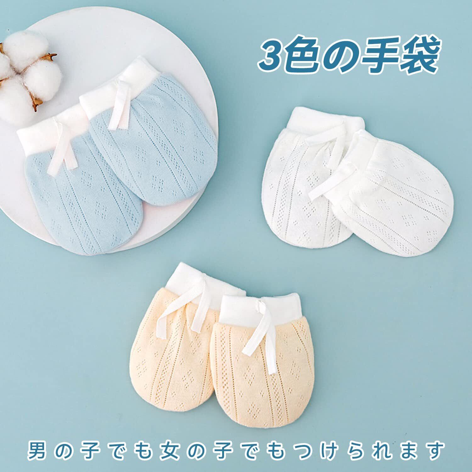 RICISUNG ベビーミトン【3点セット】赤ちゃん 手袋 ベビー用手袋 かきむしり防止 オーガニックコットン メッシュ 薄く 柔らかく 通気性 調整可能 0~12ヶ月