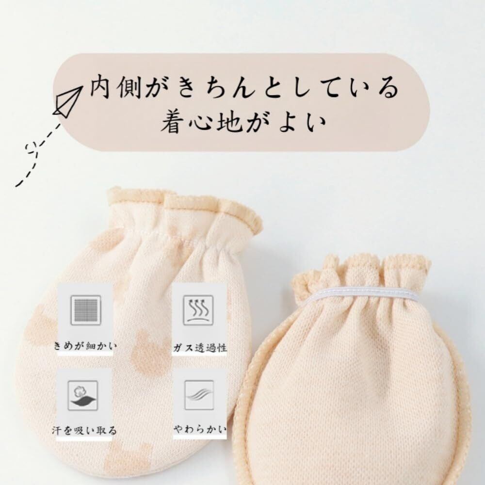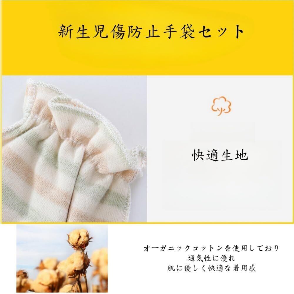 【新生児傷防止手袋セット】薄い素材で新生児の赤ちゃんの四季折々の使用に適しています着用にフィット、柔らかい素材と伸縮性のある袖口が赤ちゃんを爪の傷からしっかり守ります。赤ちゃんのデリケートな肌を優しく包み込むオーガニックコットン製のミトンです。