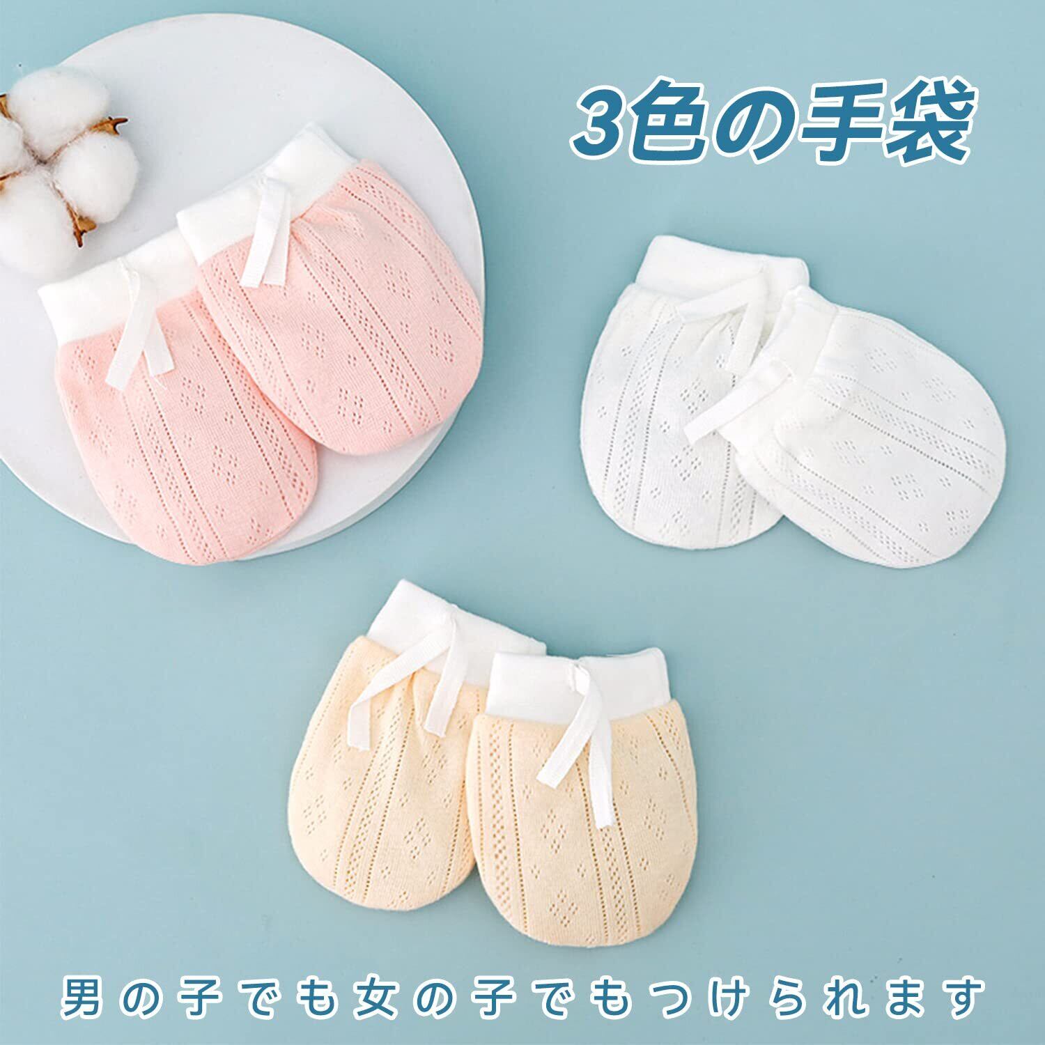 Liroyal ベビーミトン 赤ちゃん 手袋【3点セット】ベビー用手袋 かきむしり防止 オーガニックコットン メッシュ 薄く 柔らかく 通気性 調整可能 0~12ヶ月