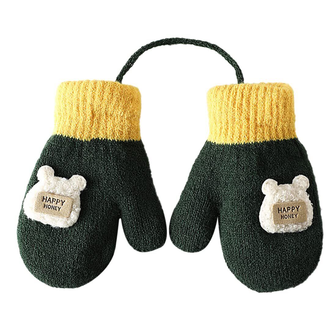 Buffydeer キッズ手袋 ベビー ニットグローブ 赤ちゃん 男女兼用 ミトン手袋 1-4歳 紐付き 女の子 男の子 あったか手袋 ボア付き 可愛い 冬物 雪遊び 厚手 保温 防寒 学生 通学 通園