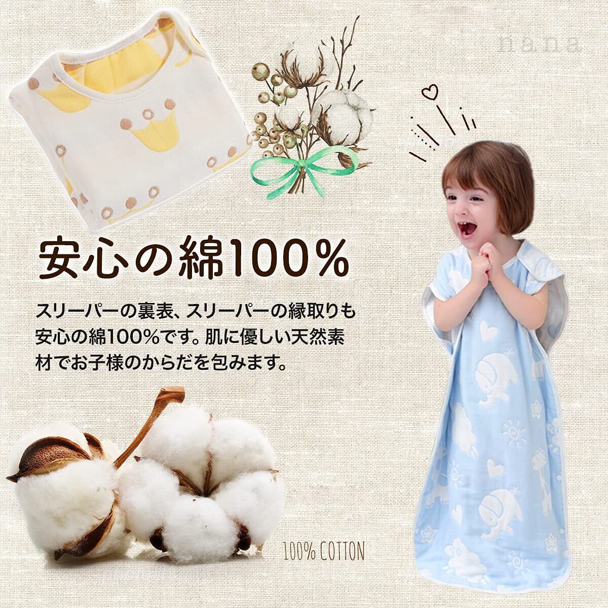 ベビースリーパー ベビー 赤ちゃん ガーゼ スリーパー 6重ガーゼ パジャマ 子供 キッズ 年中 布団 かわいい 人気 新生児 綿 コットン 春 夏 秋 冬 (Lサイズ:ゾウ)