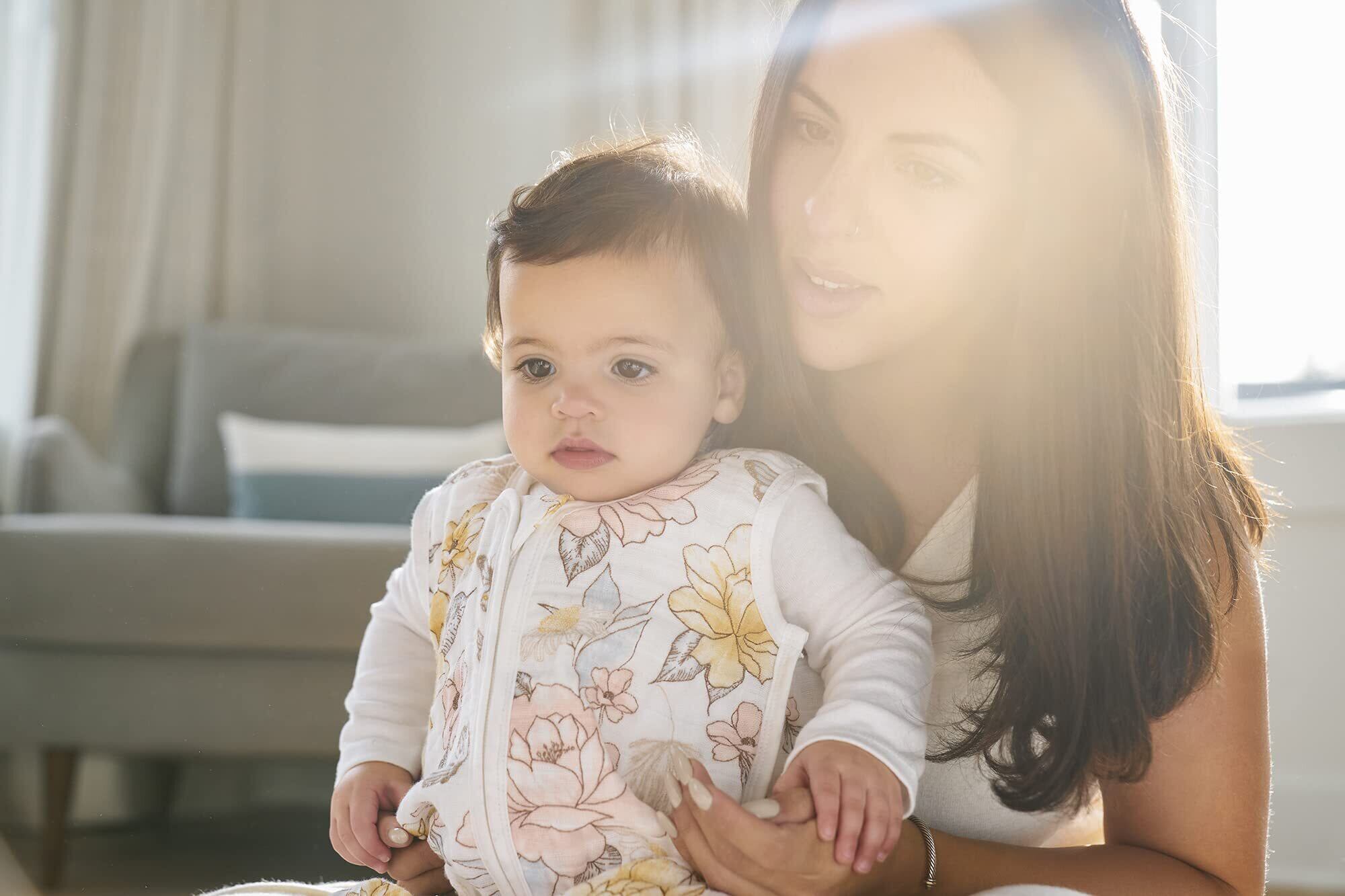 赤ちゃんもママも朝までぐっすり。パジャマの上から簡単に着せられて足まですっぽり包み込み、ブランケット代わりになるスリーピングバッグ。