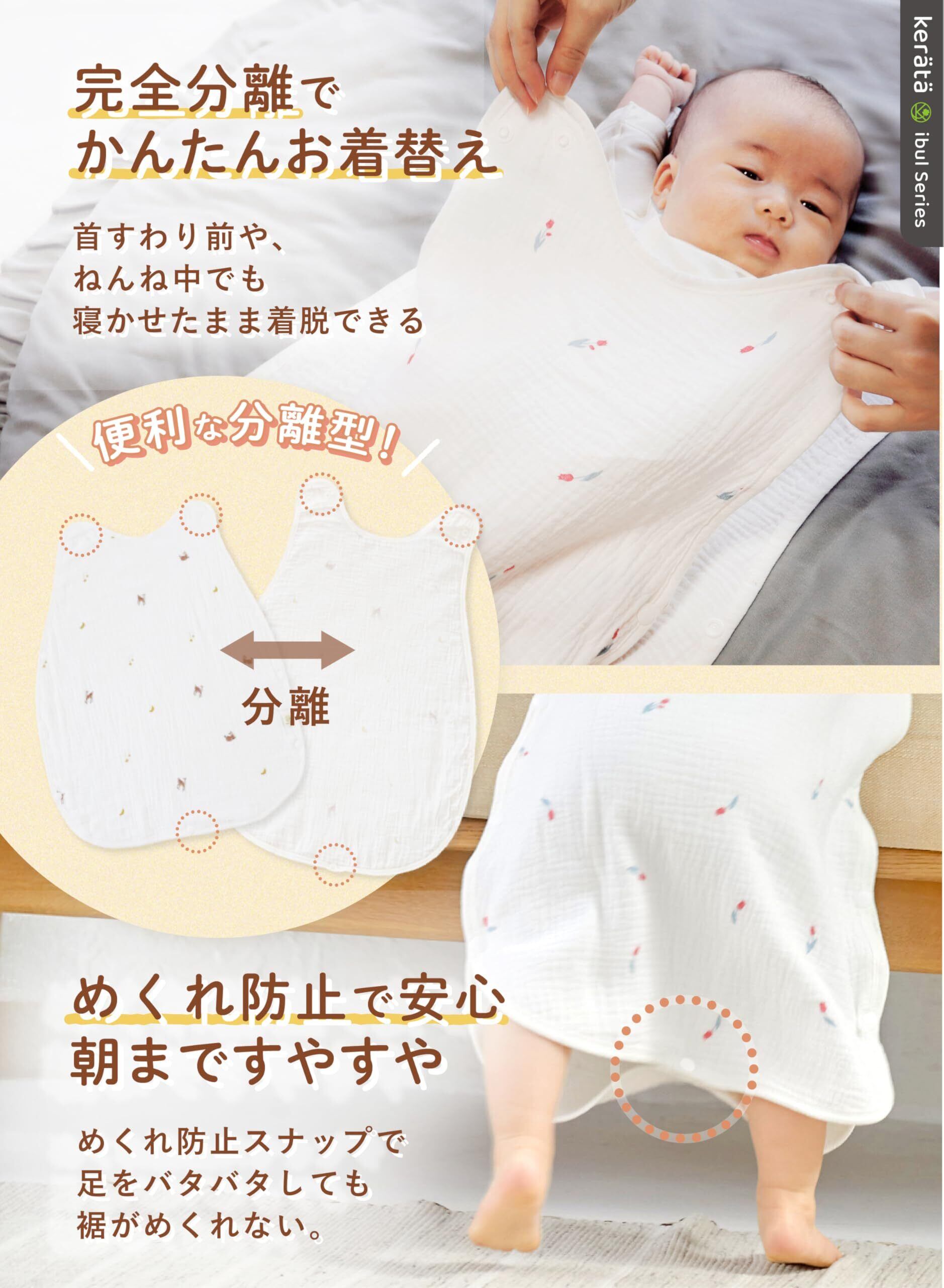 ふんわりやさしく温めて、赤ちゃんを寝冷えから守るオールシーズン快適なガーゼスリーパー