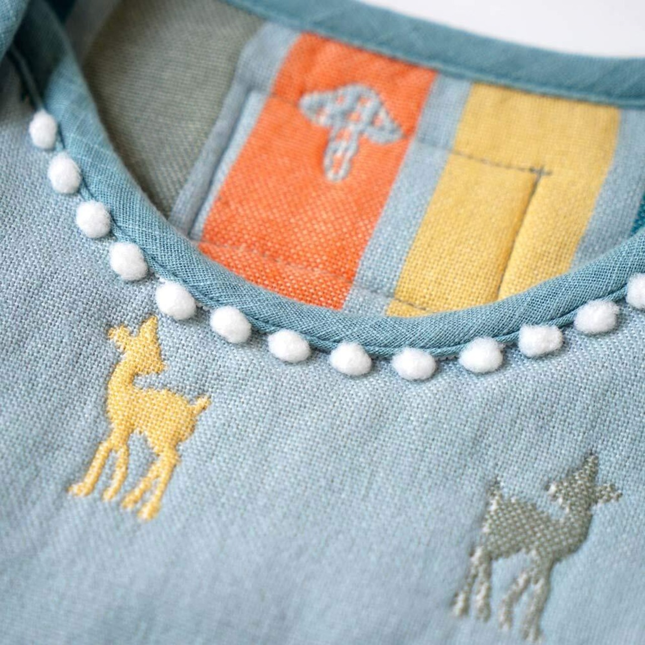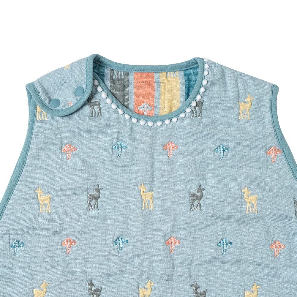 寝冷え防止に活躍する6重ガーゼスリーパー。寝る時に着せておけば、おふとんからはみ出しても安心です。股下の部分にはボタンがついているので、はだけてしまうのを防ぎます。右肩・両脇はスナップボタンで全開するので、着せる時もおむつ替えも楽々です。中層にコットン糸を、肌に触れる表・裏層にはオーガニックコットン糸を使用することによって柔らかな触り心地に仕上げました。【ふくふくガーゼ】吸水性と保温性を兼ね備え、1年中ずっと使えます。表面は細い糸、真ん中に進むにつれて太い糸を使用して織ることで、ボリューム感を出し、洗えば洗うほどふっくら感が増すのが生地の特徴。昔から織物が盛んな愛知県三河地方の高い技術力とこだわりを結集して作りました。2018年に「おもてなしセレクション」をした「ふくふくガーゼ」は、ご自宅用にもギフトにもおすすめです。