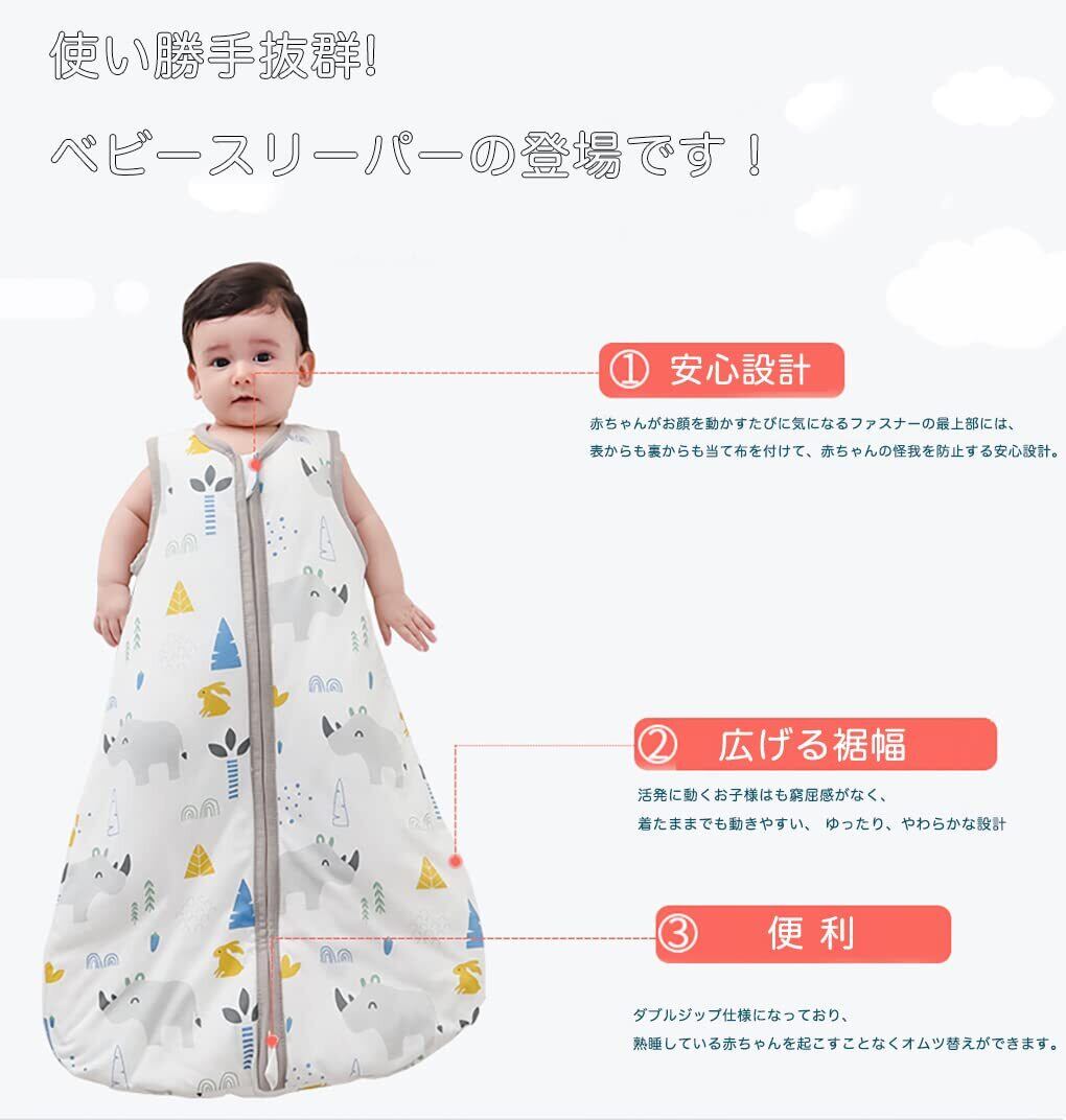保温性にも優れており、赤ちゃんが布団を蹴飛ばしても寝冷えを防ぎます。春、秋、冬に最適で、可愛らしいデザインが特徴です。